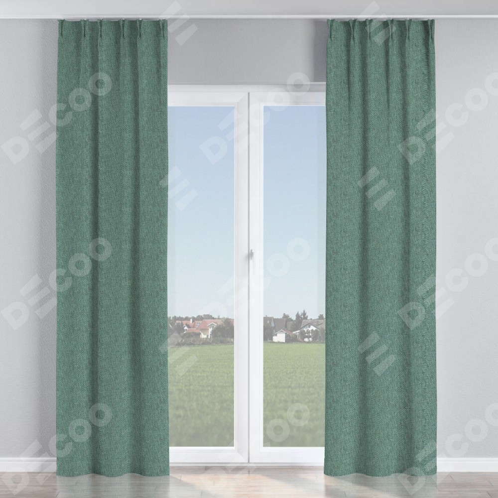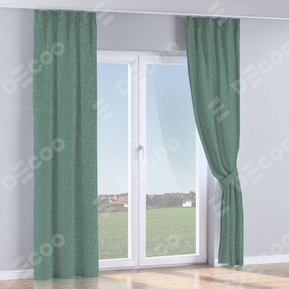 Комплект прямых штор, от производителя «Cortin», пошиты из ткани стиф димаут серо-голубой, артикул ткани 44029. С изнаночной стороны в верхней части штор пристрачивается шторная лента с декоративными складками «Кустик». Для создания элегантных складок прямые шторы шьются по стандарту с коэффициентом 1:2 (на 100 см. ширины проёма 200 см. ширины ткани).