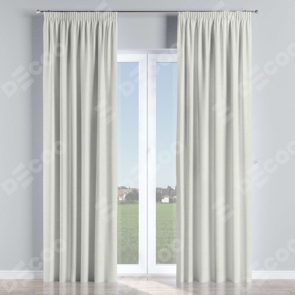 Комплект прямых штор, от производителя «Cortin», пошиты из ткани лён молочный, артикул ткани 23568. С изнаночной стороны в верхней части штор пристрачивается шторная лента с декоративными складками «Карандаш». Для создания элегантных складок прямые шторы шьются по стандарту с коэффициентом 1:2 (на 100 см. ширины проёма 200 см. ширины ткани).