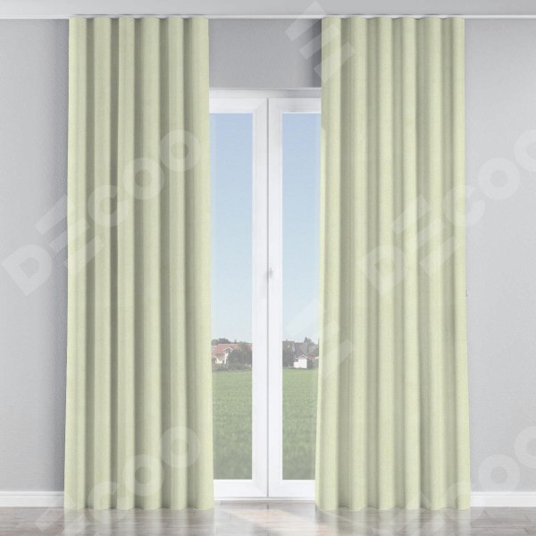 Комплект прямых штор, от производителя «Cortin», пошиты из ткани блэкаут однотонный сливочный, артикул ткани 6668−02. С изнаночной стороны в верхней части штор пристрачивается шторная лента с декоративными складками «Волна». Для создания элегантных складок прямые шторы шьются по стандарту с коэффициентом 1:2 (на 100 см. ширины проёма 200 см. ширины ткани).