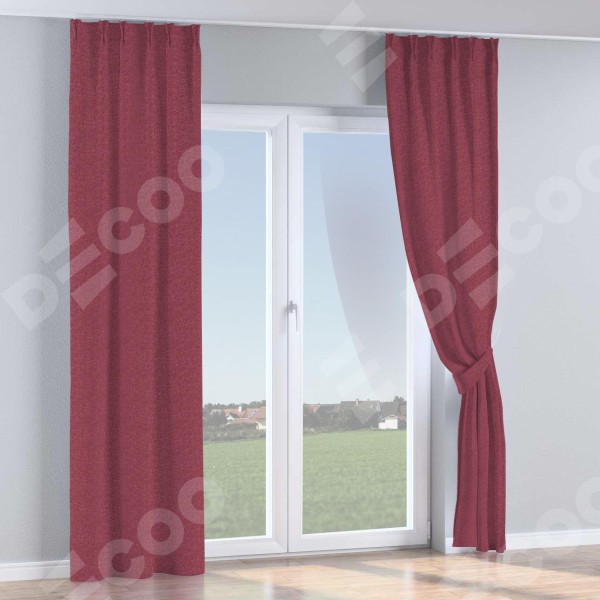 Комплект прямых штор, от производителя «Cortin», пошиты из ткани лён димаут марсала, артикул ткани 1602. С изнаночной стороны в верхней части штор пристрачивается шторная лента с декоративными складками «Кустик». Для создания элегантных складок прямые шторы шьются по стандарту с коэффициентом 1:2 (на 100 см. ширины проёма 200 см. ширины ткани).