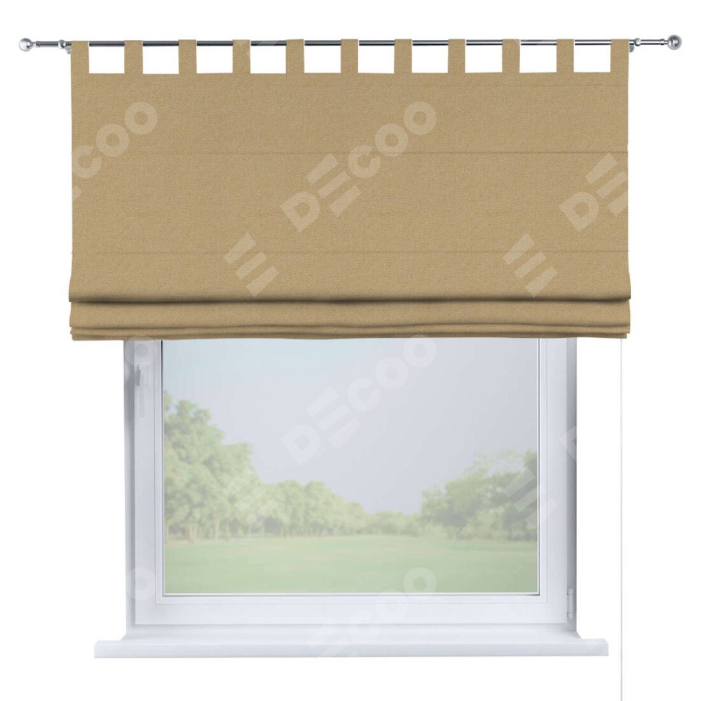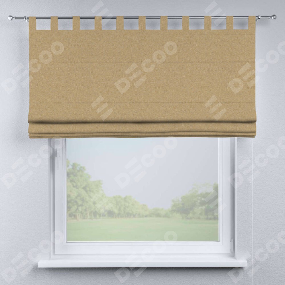 Римская штора производителя «Cortin», используется для проёма, пошита из ткани лён димаут тёмно-бежевый, артикул ткани 83037. Данная модель пошита на петлях, комплектуется на выбор круглым карнизом и подходит для монтажа на стену. Римская штора на петлях имеет простую систему регулировки высоты, отличительным преимуществом данной модели является простой способ монтажа. Достаточно повесить ее на трубу и штора готова!