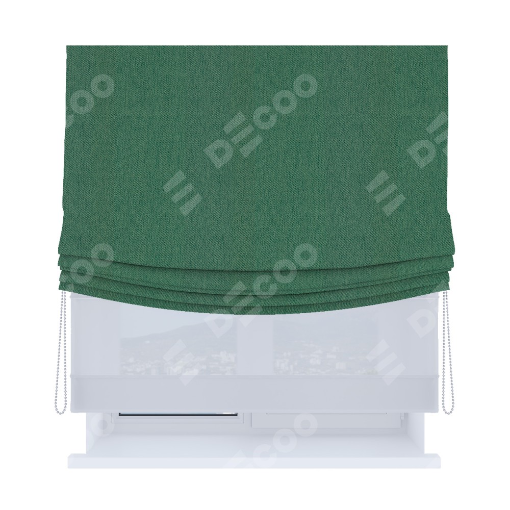 Римская штора день-ночь производителя «Cortin», используется для проёма, пошита из двух полотен, с лицевой стороны твид блэкаут зелёный артикул 21589, вторая ткань тюль (по стандарту комплектуется тюль белого цвета артикул V-01). Имеет универсальный механизм и подходит для монтажа: на потолок, на стену и в нишу. Удобное управление каждой шторой отдельно.