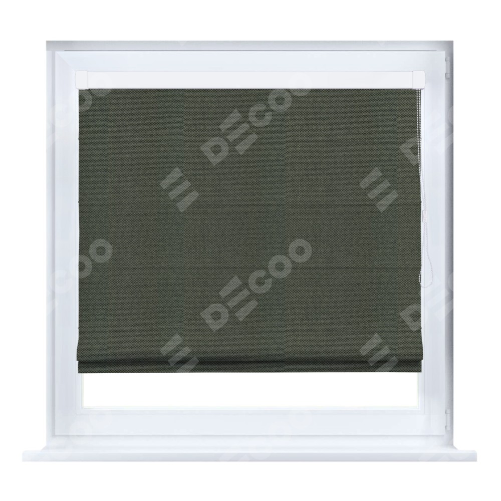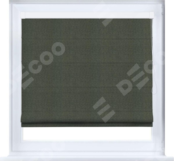 Римская штора кассетного типа, производителя «Cortin», устанавливается только на пластиковые окна и прилегает к стеклопакету, пошита из ткани лён димаут графит, артикул 27.