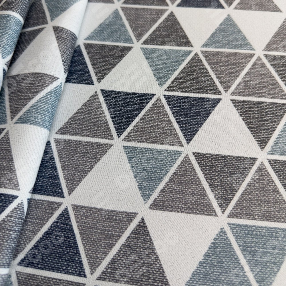 Римская штора день-ночь производителя «Cortin», используется для проёма, пошита из двух полотен, с лицевой стороны димаут «Треугольники синие» артикул 23022, вторая ткань тюль (по стандарту комплектуется тюль белого цвета артикул V-01). Имеет универсальный механизм и подходит для монтажа: на потолок, на стену и в нишу. Удобное управление каждой шторой отдельно.