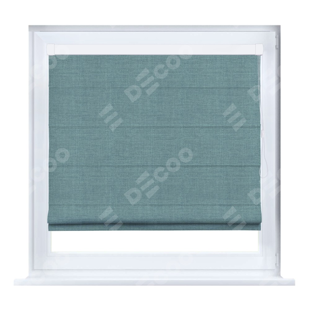 Римская штора кассетного типа, производителя «Cortin», устанавливается только на пластиковые окна и прилегает к стеклопакету, пошита из ткани лён голубой, артикул 74736.