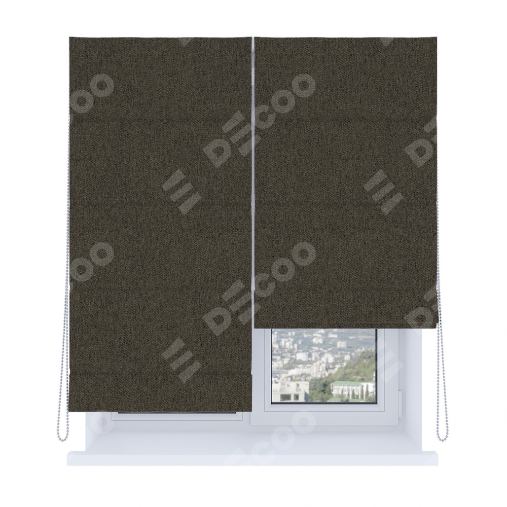 Римская штора производителя «Cortin», используется для проёма, пошита из ткани твид блэкаут тёмно-коричневый, артикул ткани 21584. Имеет универсальный механизм и подходит для монтажа: на потолок, на стену и в нишу. Удобное управление каждой шторой отдельно.