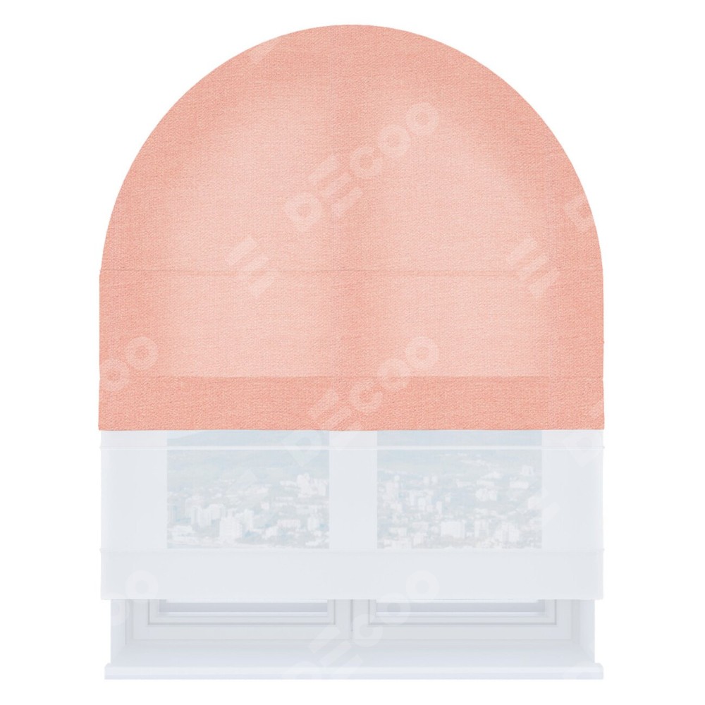 Римская штора день-ночь производителя «Cortin», используется для арочного проёма, пошита из двух полотен, с лицевой стороны лён розовый артикул 00005, вторая ткань тюль (по стандарту комплектуется тюль белого цвета артикул V-01). Штора шьётся по индивидуальным размерам, для данного типа римской шторы возможная ширина от 60 до 300 см. Удобное управление каждой шторой отдельно.