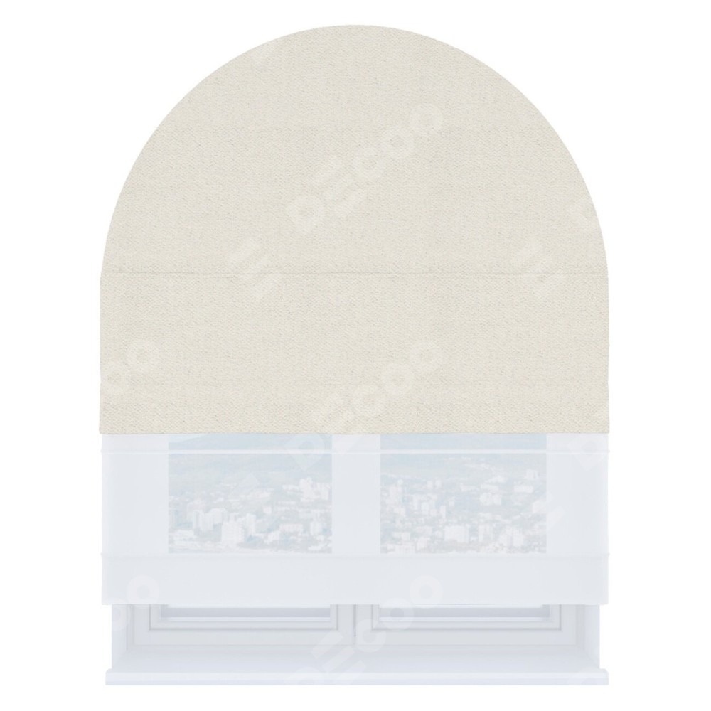 Римская штора день-ночь производителя «Cortin», используется для арочного проёма, пошита из двух полотен, с лицевой стороны блэкаут тиснение с блеском светло-серый артикул 34633, вторая ткань тюль (по стандарту комплектуется тюль белого цвета артикул V-01). Изнаночная сторона основного материала черного цвета, что обеспечивает необходимую светонепроницаемость. Штора шьётся по индивидуальным размерам, для данного типа римской шторы возможная ширина от 60 до 300 см. Удобное управление каждой шторой отдельно.