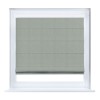 Римская штора кассетного типа, производителя «Cortin», устанавливается только на пластиковые окна и прилегает к стеклопакету, пошита из ткани лён димаут серый, артикул Ф3.