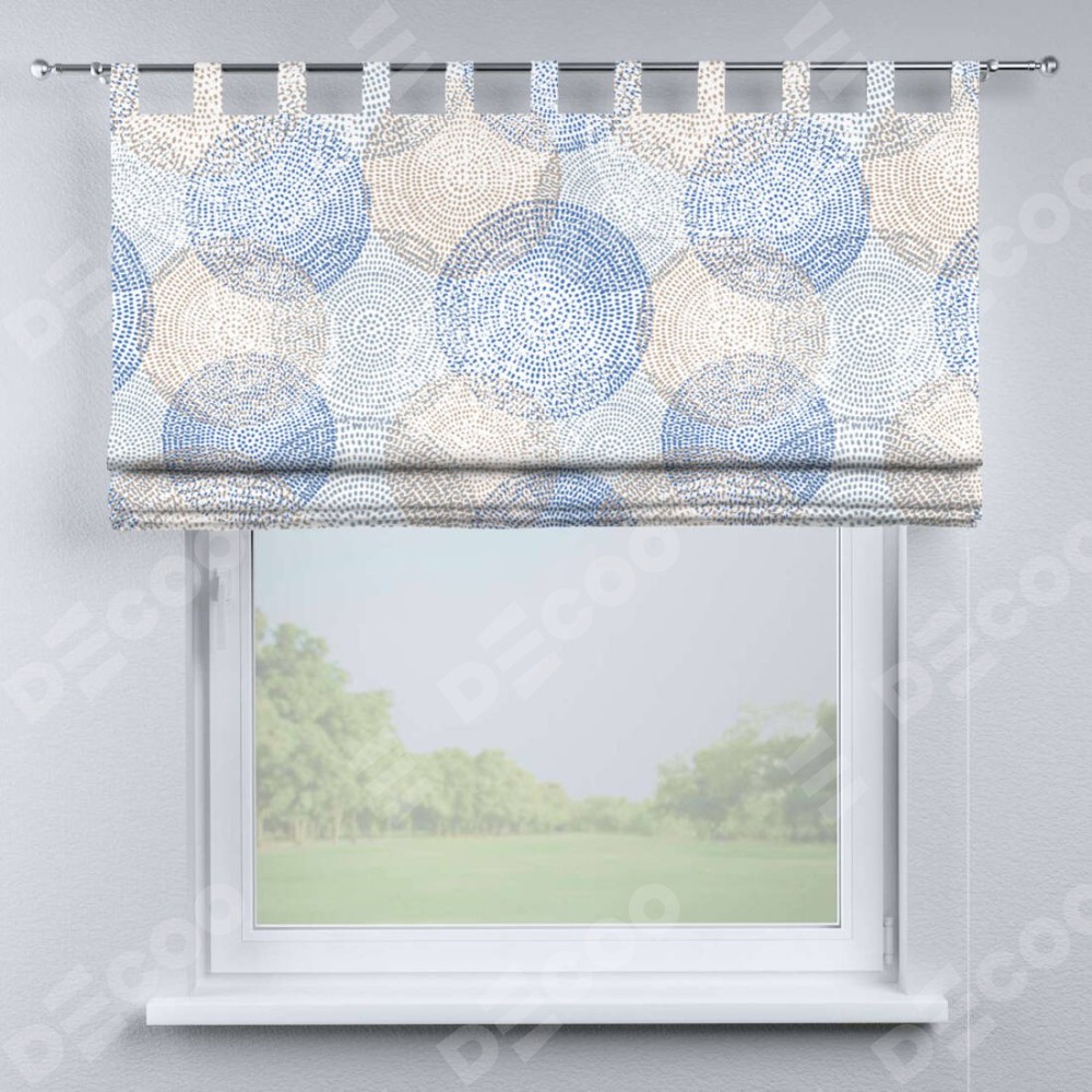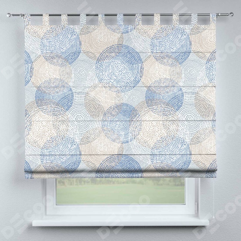 Римская штора производителя «Cortin», используется для проёма, пошита из ткани блэкаут с нанесением сублимационной печати «Абстрактные круги». Данная модель пошита на петлях, комплектуется на выбор круглым карнизом и подходит для монтажа на стену. Римская штора на петлях имеет простую систему регулировки высоты, отличительным преимуществом данной модели является простой способ монтажа. Достаточно повесить ее на трубу и штора готова!