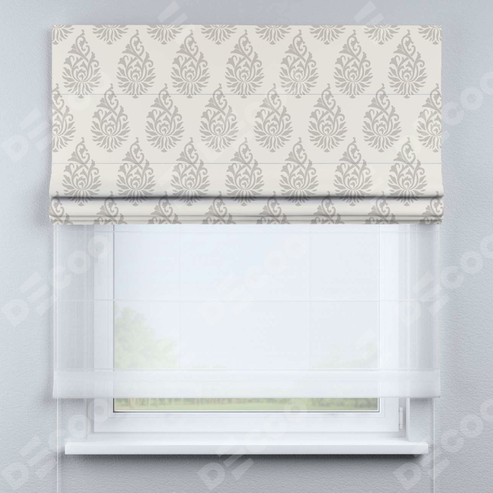 Римская штора день-ночь производителя «Cortin», используется для проёма, пошита из двух полотен, с лицевой блэкаут с нанесением сублимационной печати «Изящный кулон», вторая ткань тюль (по стандарту комплектуется тюль белого цвета артикул V-01). Имеет универсальный механизм и подходит для монтажа: на потолок, на стену и в нишу.