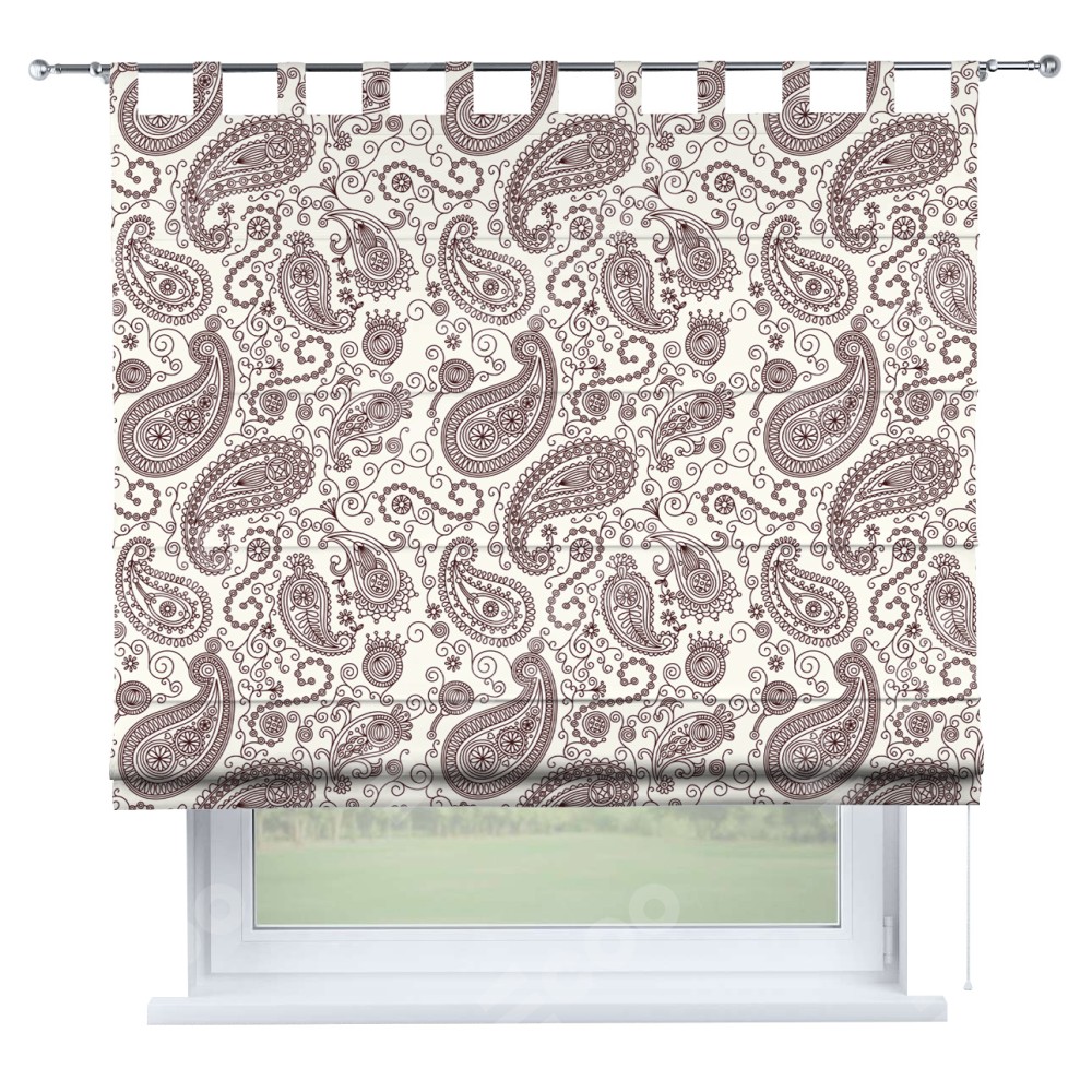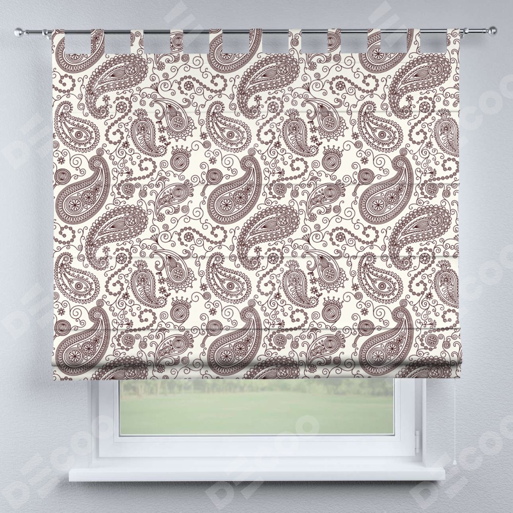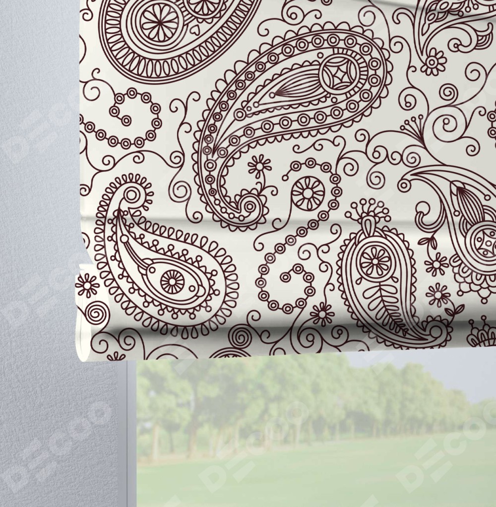 Римская штора производителя «Cortin», используется для проёма, пошита из ткани блэкаут с нанесением сублимационной печати «Индийский узор». Данная модель пошита на петлях, комплектуется на выбор круглым карнизом и подходит для монтажа на стену. Римская штора на петлях имеет простую систему регулировки высоты, отличительным преимуществом данной модели является простой способ монтажа. Достаточно повесить ее на трубу и штора готова!