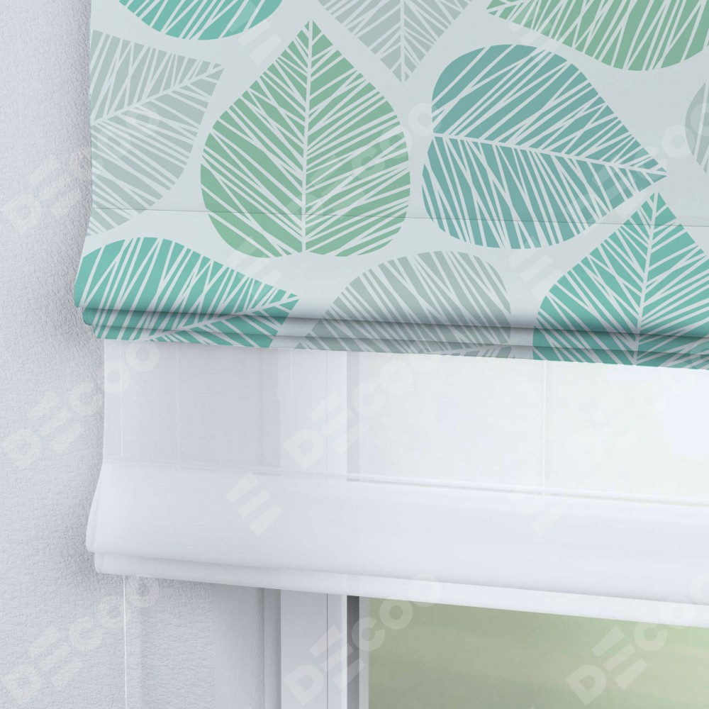 Римская штора день-ночь производителя «Cortin», используется для проёма, пошита из двух полотен, с лицевой блэкаут с нанесением сублимационной печати «Весенняя листва», вторая ткань тюль (по стандарту комплектуется тюль белого цвета артикул V-01). Имеет универсальный механизм и подходит для монтажа: на потолок, на стену и в нишу.