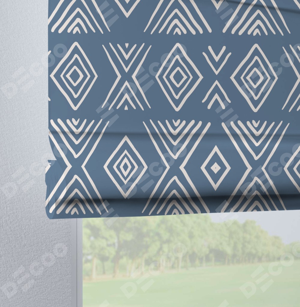 Римская штора производителя «Cortin», используется для проёма, пошита из ткани блэкаут с нанесением сублимационной печати «Графический орнамент». Данная модель пошита на петлях, комплектуется на выбор круглым карнизом и подходит для монтажа на стену. Римская штора на петлях имеет простую систему регулировки высоты, отличительным преимуществом данной модели является простой способ монтажа. Достаточно повесить ее на трубу и штора готова!