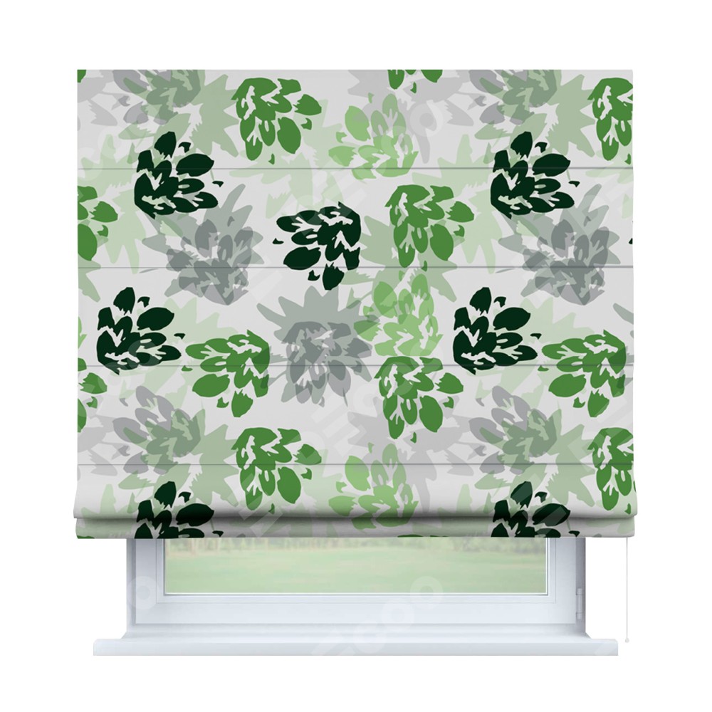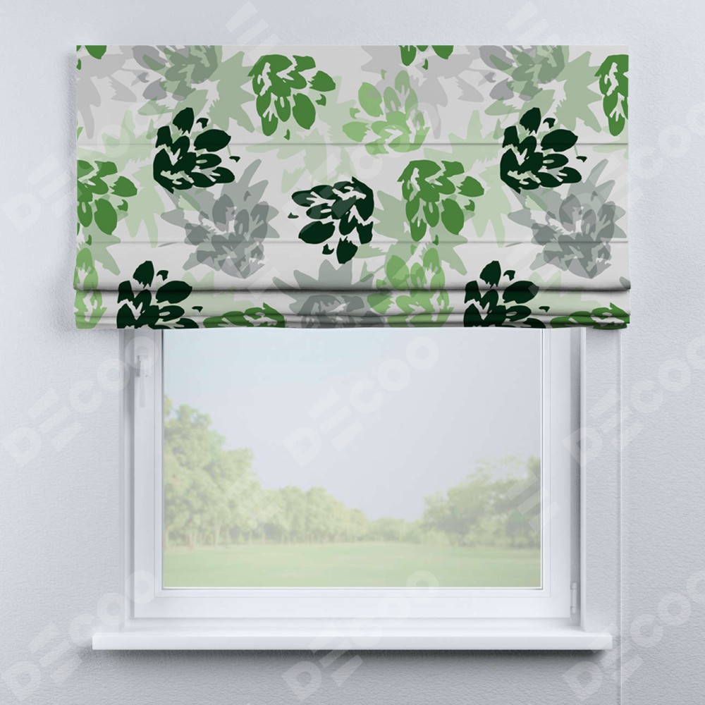Римская штора производителя «Cortin», используется для проёма, пошита из ткани блэкаут с нанесением сублимационной печати «Зелёный луг». Имеет универсальный механизм и подходит для монтажа: на потолок, на стену и в нишу.