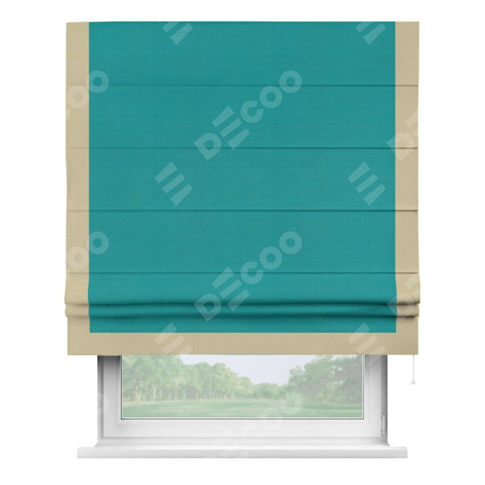 Римская штора «Кортин» с кантом Виктория, для проема, ткань блэкаут однотонный бирюзовый
