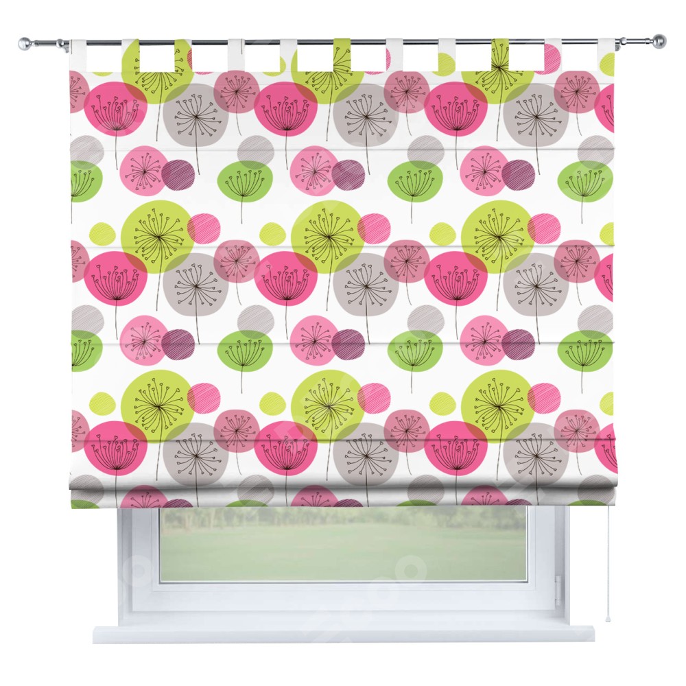 Римская штора производителя «Cortin», используется для проёма, пошита из ткани блэкаут с нанесением сублимационной печати «Цветные одуванчики». Данная модель пошита на петлях, комплектуется на выбор круглым карнизом и подходит для монтажа на стену. Римская штора на петлях имеет простую систему регулировки высоты, отличительным преимуществом данной модели является простой способ монтажа. Достаточно повесить ее на трубу и штора готова!