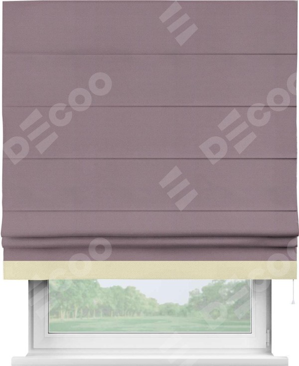 Римская штора производителя «Cortin», используется для проёма, пошита из ткани блэкаут однотонный брусника, артикул ткани 88302. Отделка шторы кантом «Джестер», ткань для канта используется из блэкаута однотонного разной расцветки на выбор. Имеет универсальный механизм и подходит для монтажа: на потолок, на стену и в нишу.