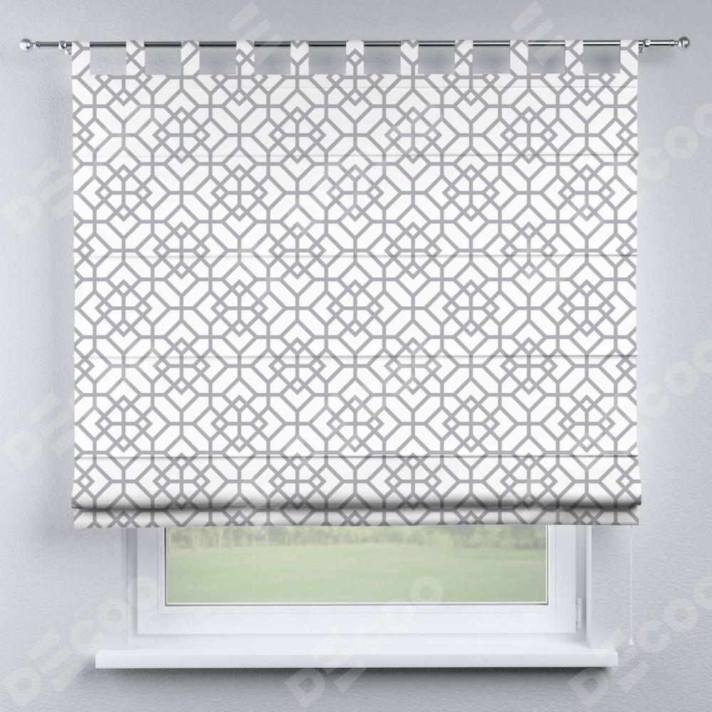 Римская штора производителя «Cortin», используется для проёма, пошита из ткани блэкаут с нанесением сублимационной печати «Архитектурный орнамент». Данная модель пошита на петлях, комплектуется на выбор круглым карнизом и подходит для монтажа на стену. Римская штора на петлях имеет простую систему регулировки высоты, отличительным преимуществом данной модели является простой способ монтажа. Достаточно повесить ее на трубу и штора готова!