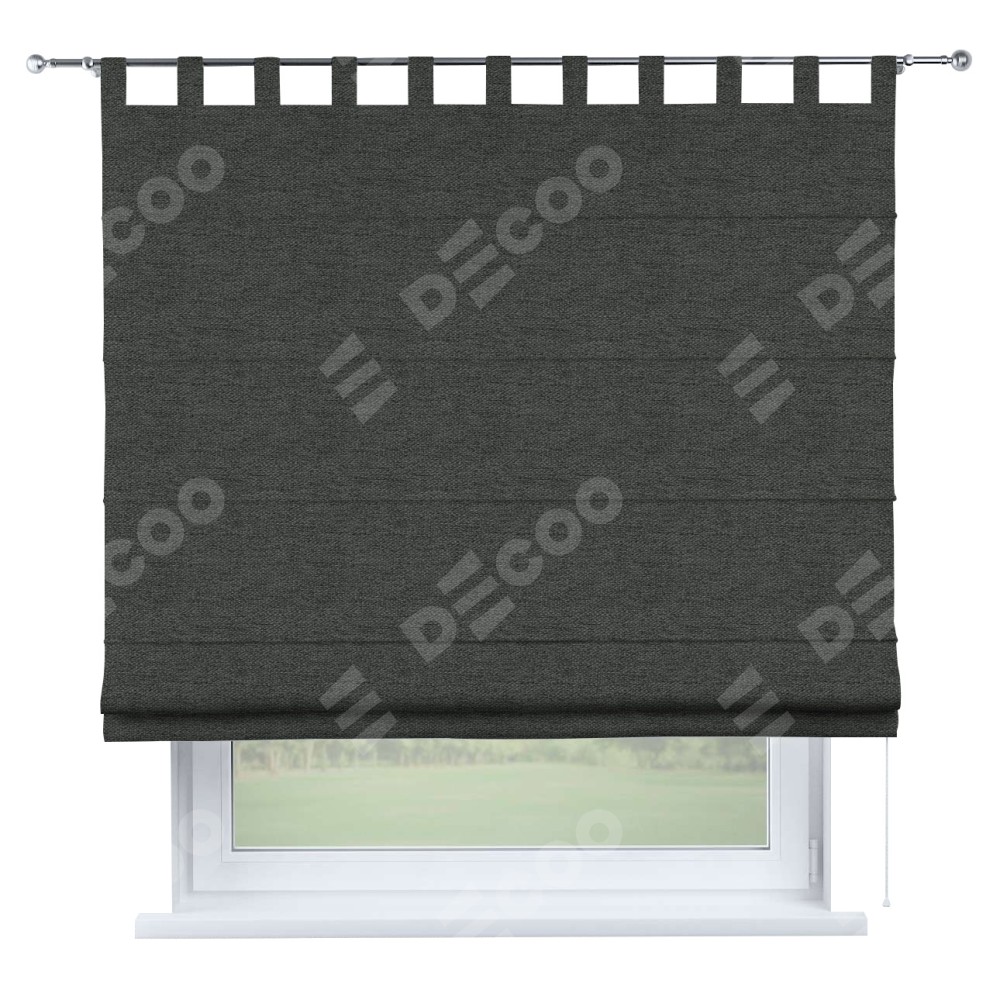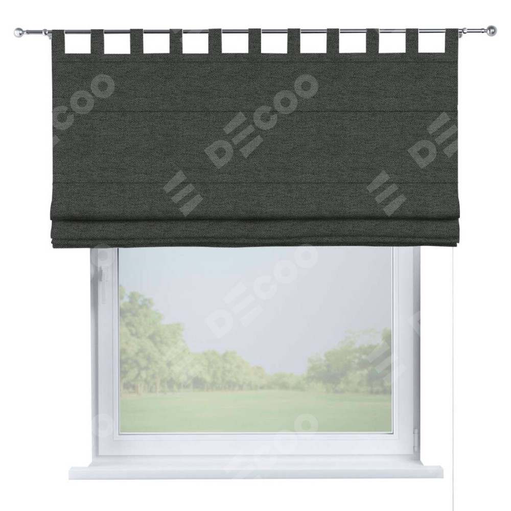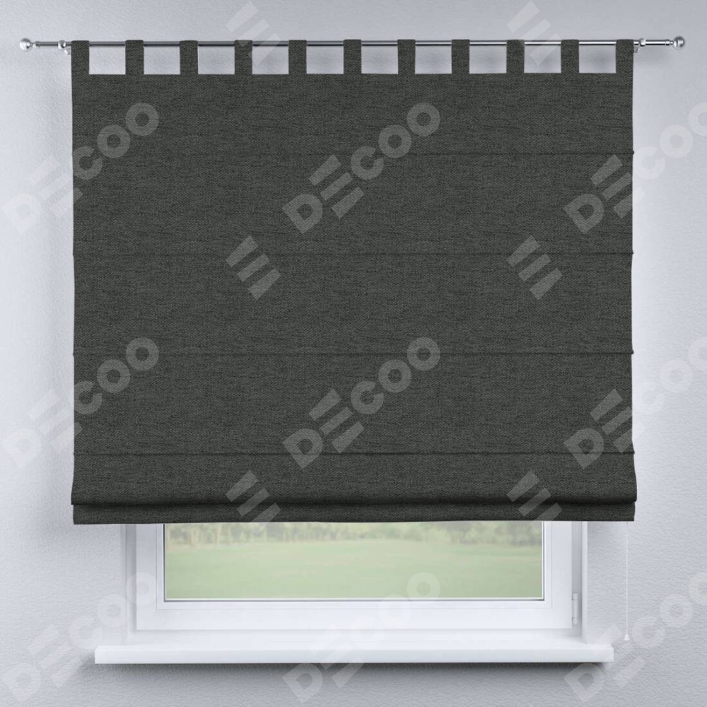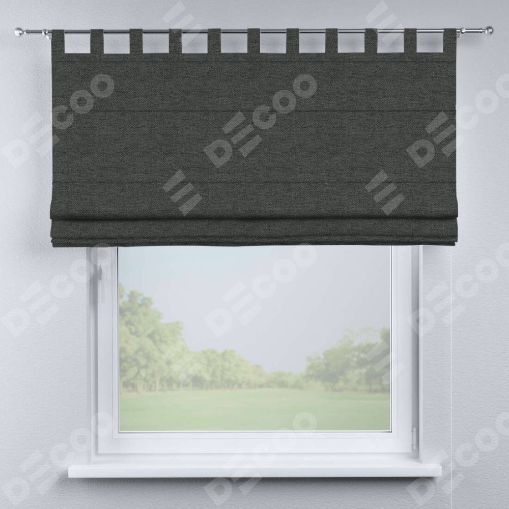 Римская штора производителя «Cortin», используется для проёма, пошита из ткани стиф димаут графит, артикул ткани 44026. Данная модель пошита на петлях, комплектуется на выбор круглым карнизом и подходит для монтажа на стену. Римская штора на петлях имеет простую систему регулировки высоты, отличительным преимуществом данной модели является простой способ монтажа. Достаточно повесить ее на трубу и штора готова!