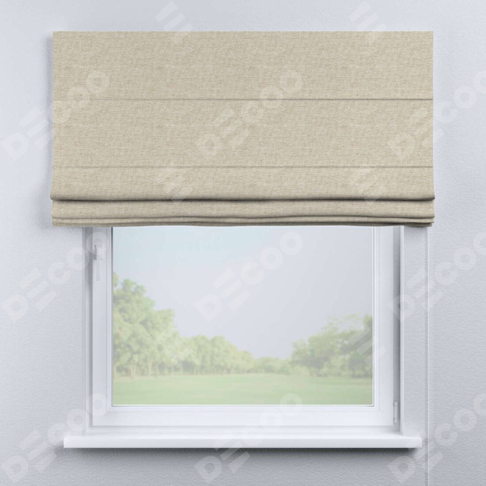 Римская штора производителя «Cortin», используется для проёма, пошита из ткани стиф димаут молочный, артикул ткани 18082. Имеет универсальный механизм и подходит для монтажа: на потолок, на стену и в нишу.