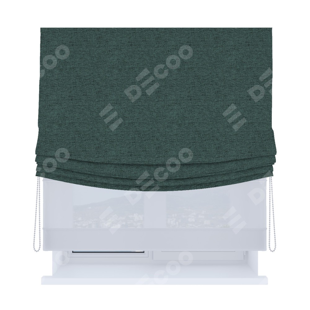 Римская штора «Кортин», день-ночь с мягкими складками, стиф димаут сине-зелёный