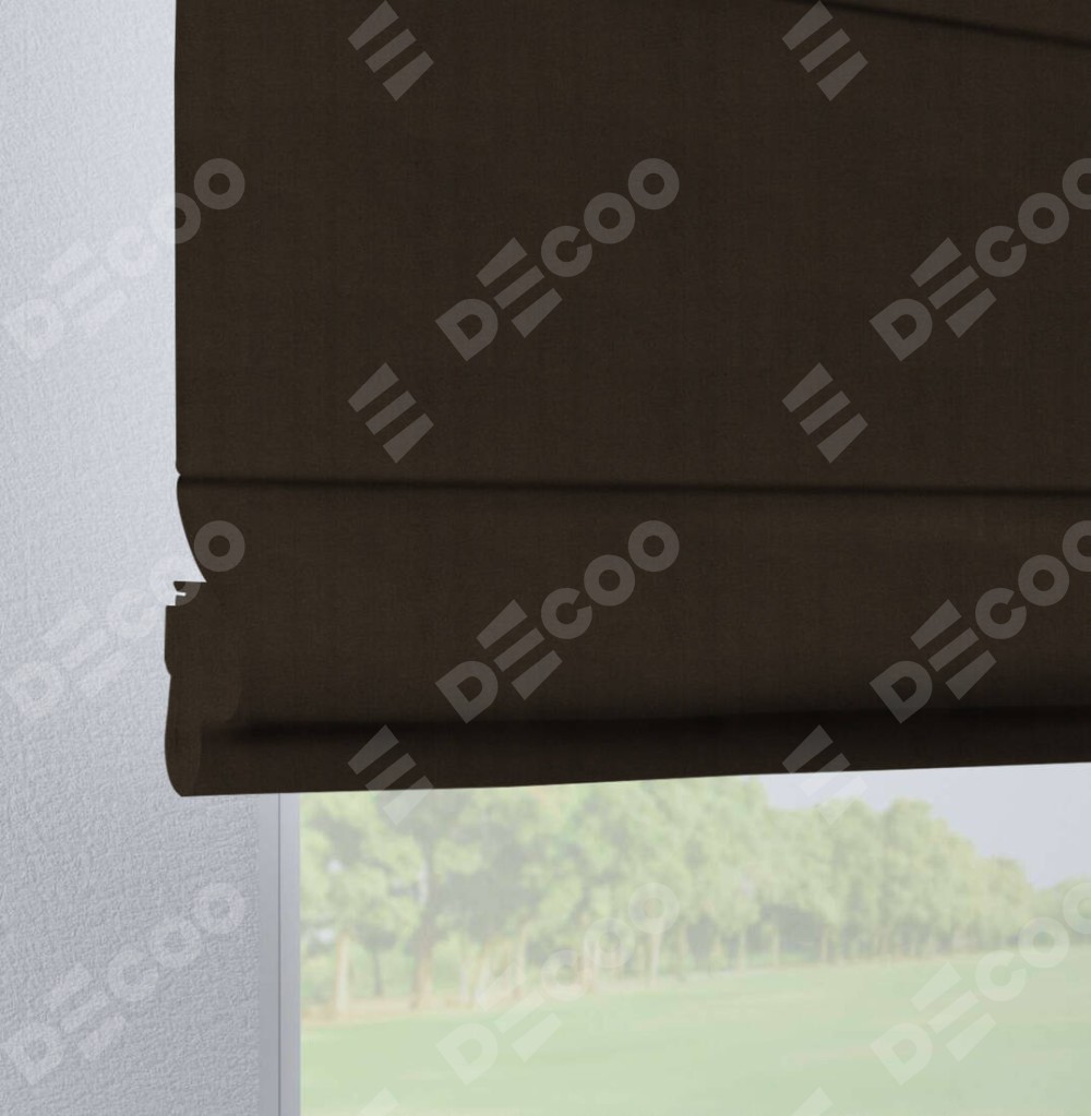 Римская штора производителя «Cortin», используется для проёма, пошита из ткани вельвет тёмно-коричневый, артикул ткани 30991. Данная модель пошита на петлях, комплектуется на выбор круглым карнизом и подходит для монтажа на стену. Римская штора на петлях имеет простую систему регулировки высоты, отличительным преимуществом данной модели является простой способ монтажа. Достаточно повесить ее на трубу и штора готова!
