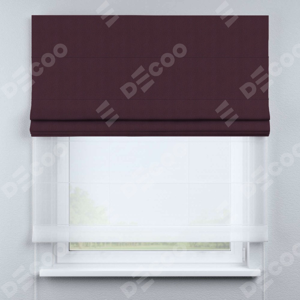 Римская штора день-ночь производителя «Cortin», используется для проёма, пошита из двух полотен, с лицевой стороны блэкаут однотонный сиреневый артикул 29333−2, вторая ткань тюль (по стандарту комплектуется тюль белого цвета артикул V-01). Имеет универсальный механизм и подходит для монтажа: на потолок, на стену и в нишу.