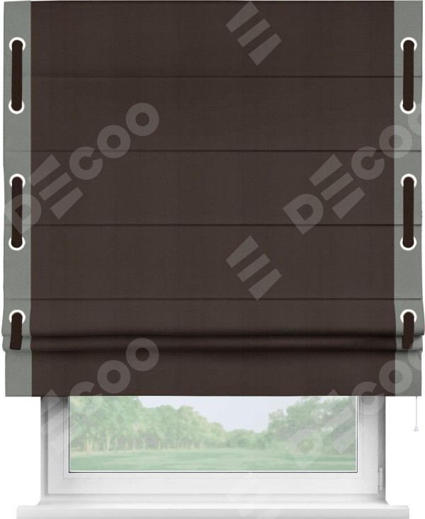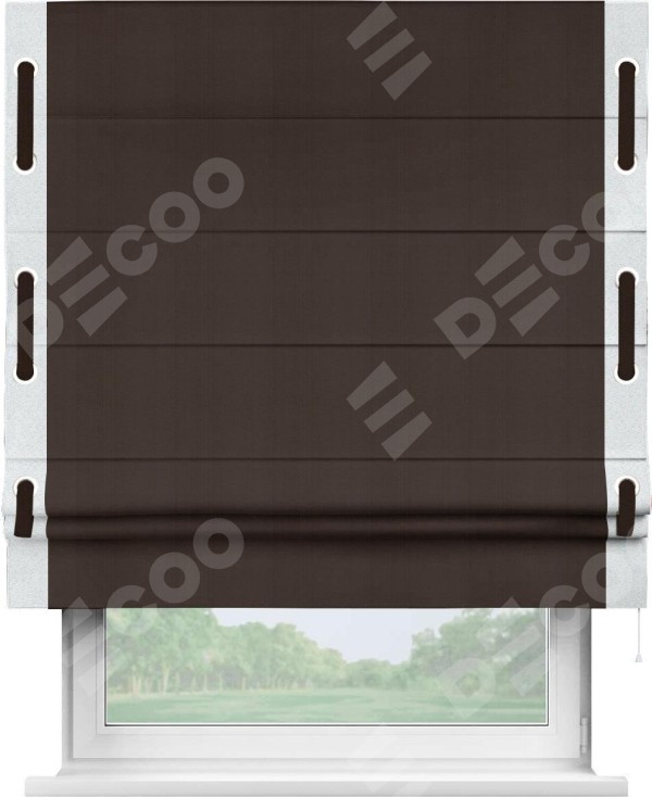 Римская штора «Кортин» с кантом Стрим Дуо (люверсы с пояском), для проема, ткань блэкаут однотонный венге