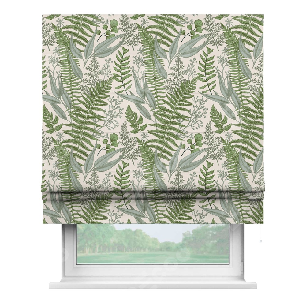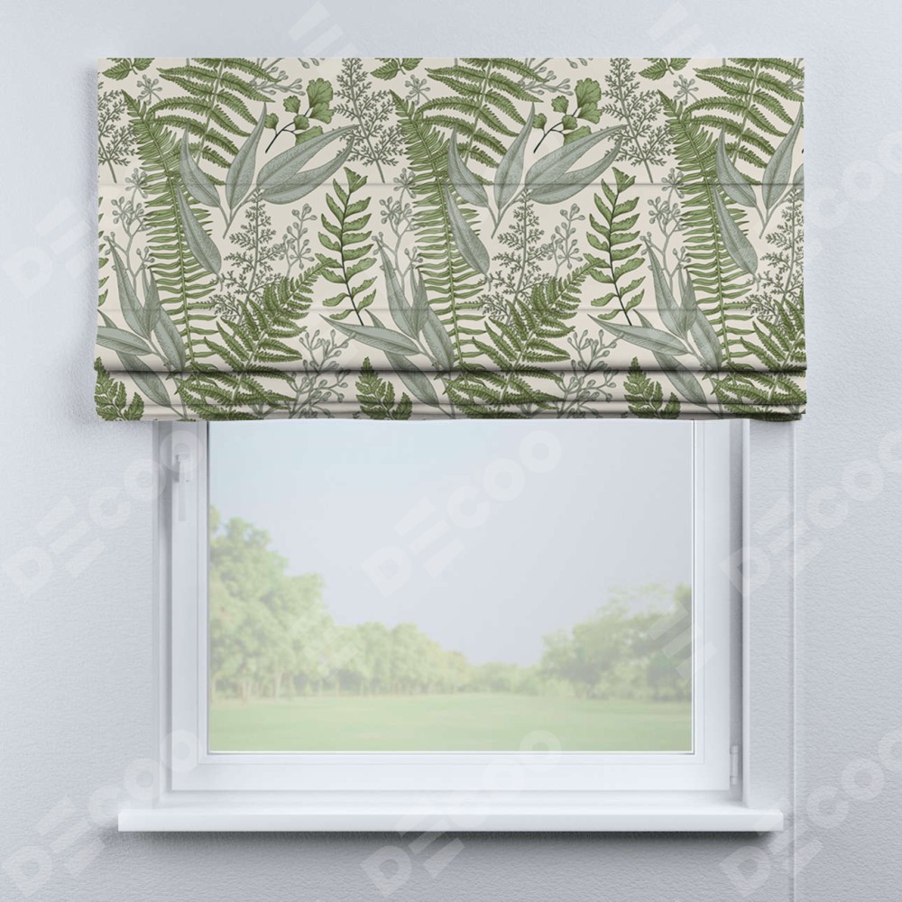 Римская штора производителя «Cortin», используется для проёма, пошита из ткани блэкаут с нанесением сублимационной печати «Тенистый лес». Имеет универсальный механизм и подходит для монтажа: на потолок, на стену и в нишу.