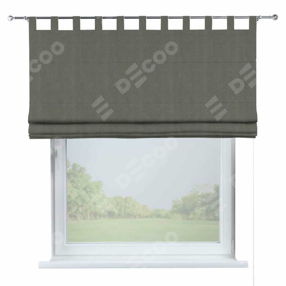 Римская штора производителя «Cortin», используется для проёма, пошита из ткани блэкаут однотонный тёмно-серый, артикул ткани 29332−1. Данная модель пошита на петлях, комплектуется на выбор круглым карнизом и подходит для монтажа на стену. Римская штора на петлях имеет простую систему регулировки высоты, отличительным преимуществом данной модели является простой способ монтажа. Достаточно повесить ее на трубу и штора готова!