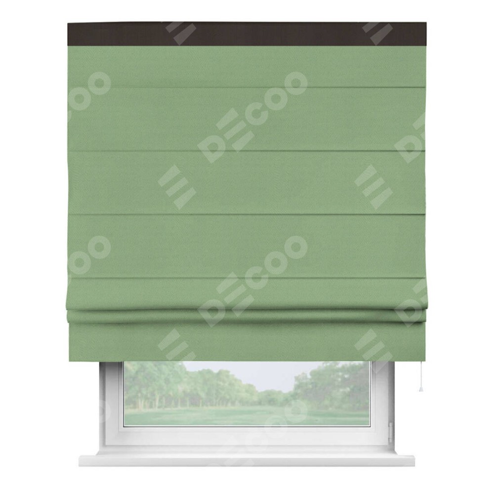 Римская штора производителя «Cortin», используется для проёма, пошита из ткани блэкаут однотонный оливковый, артикул ткани 88300. Отделка шторы кантом «Кинг», ткань для канта используется из блэкаута однотонного разной расцветки на выбор. Имеет универсальный механизм и подходит для монтажа: на потолок, на стену и в нишу.