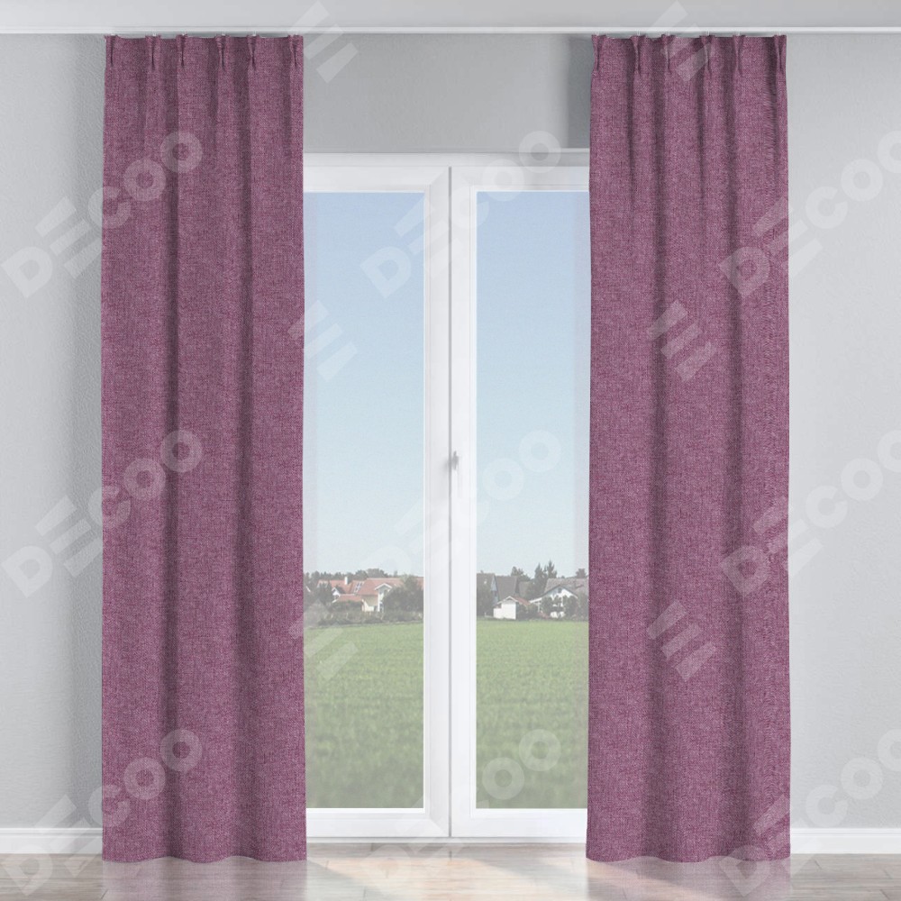 Комплект прямых штор, от производителя «Cortin», пошиты из ткани лён кашемир сиреневый, артикул ткани 21620. С изнаночной стороны в верхней части штор пристрачивается шторная лента с декоративными складками «Кустик». Для создания элегантных складок прямые шторы шьются по стандарту с коэффициентом 1:2 (на 100 см. ширины проёма 200 см. ширины ткани).