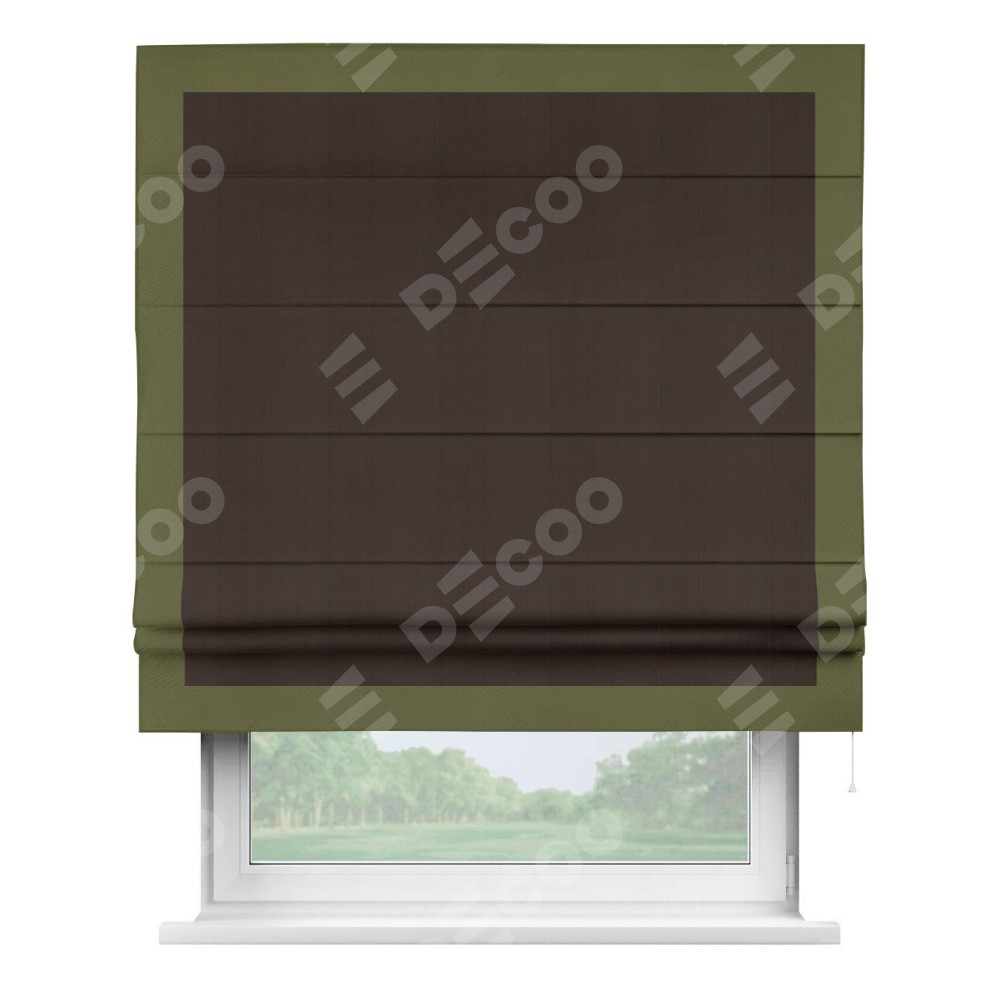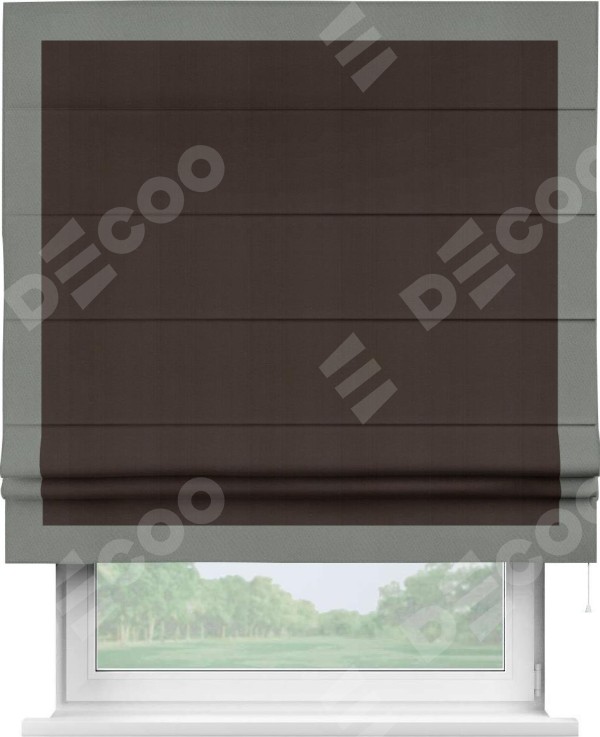 Римская штора «Кортин» с кантом Чесс, для проема, ткань блэкаут однотонный тёмно-коричневый