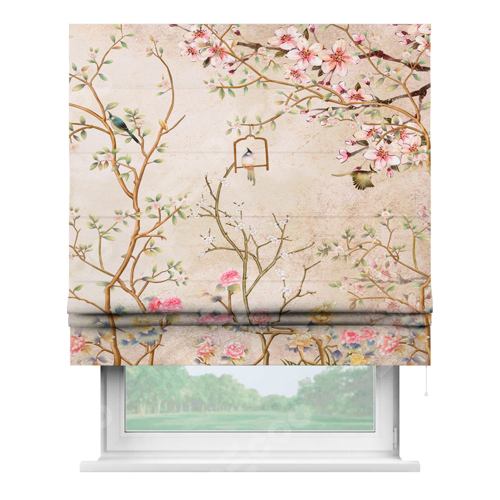 Римская штора производителя «Cortin», используется для проёма, пошита из ткани блэкаут с нанесением сублимационной печати «Весенний сад». Имеет универсальный механизм и подходит для монтажа: на потолок, на стену и в нишу.