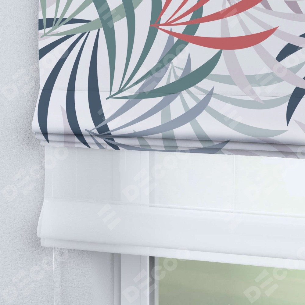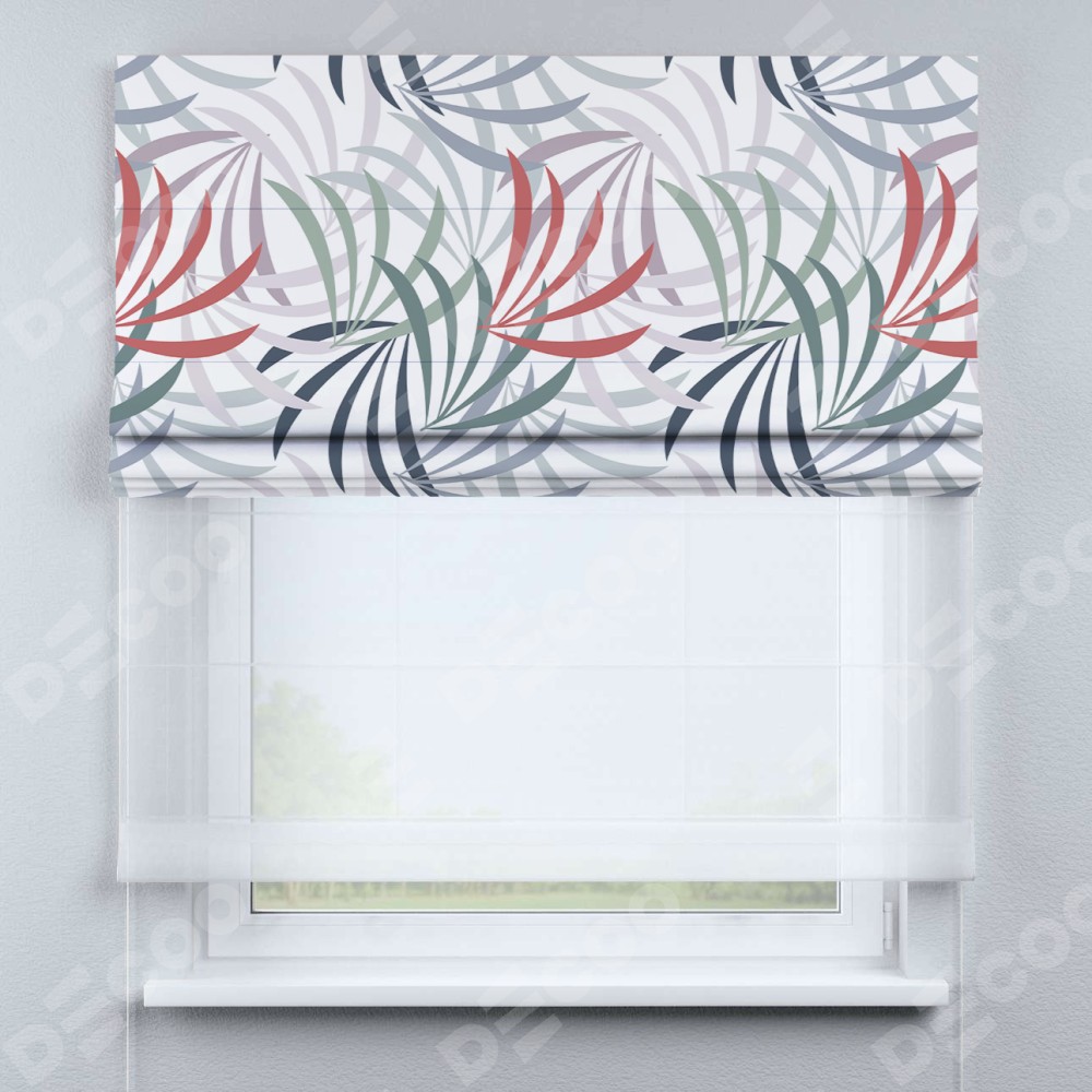 Римская штора день-ночь производителя «Cortin», используется для проёма, пошита из двух полотен, с лицевой блэкаут с нанесением сублимационной печати «Летняя прохлада», вторая ткань тюль (по стандарту комплектуется тюль белого цвета артикул V-01). Имеет универсальный механизм и подходит для монтажа: на потолок, на стену и в нишу.
