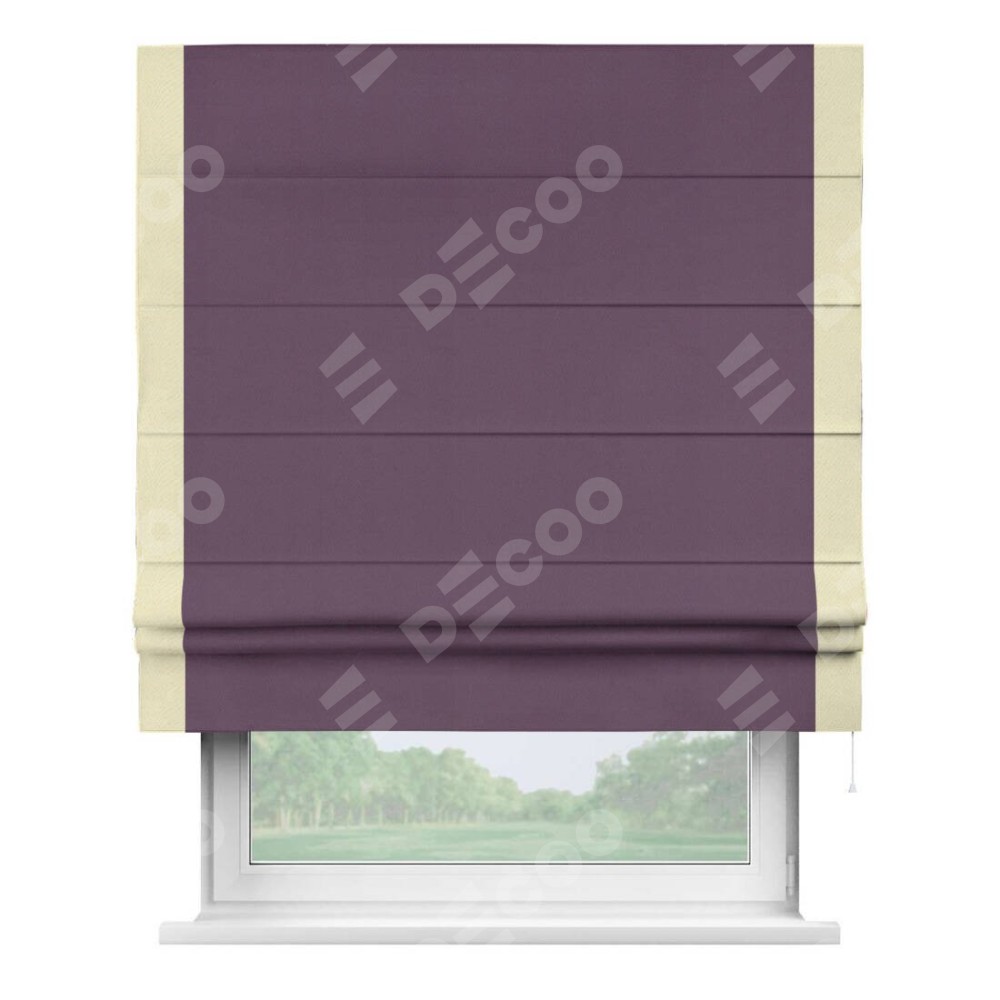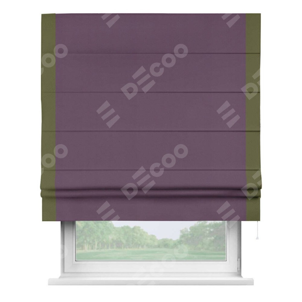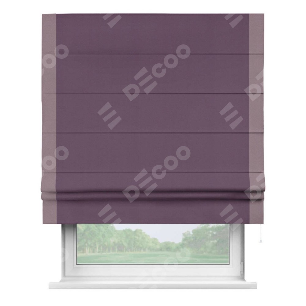 Римская штора производителя «Cortin», используется для проёма, пошита из ткани блэкаут однотонный фуксия, артикул ткани 88303. Отделка шторы кантом «Стрим Дуо», ткань для канта используется из блэкаута однотонного разной расцветки на выбор. Имеет универсальный механизм и подходит для монтажа: на потолок, на стену и в нишу.