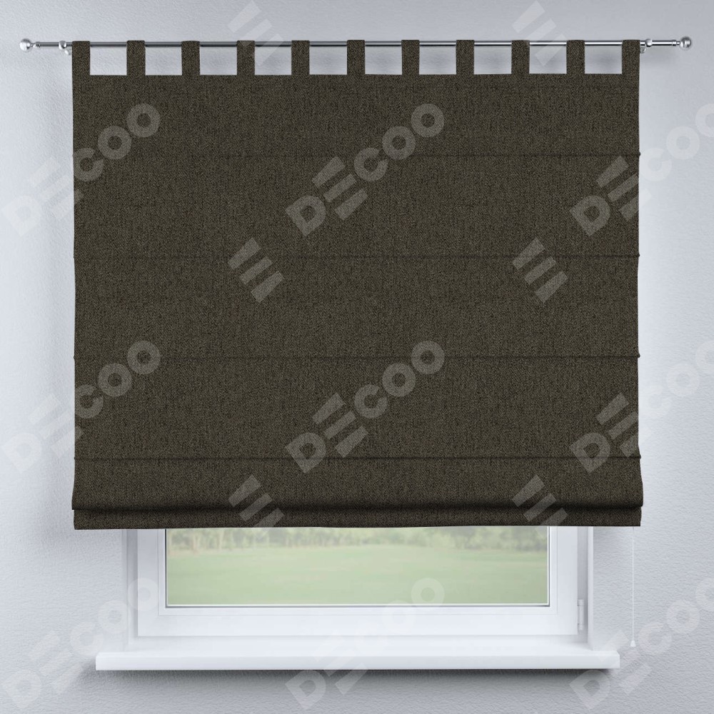 Римская штора производителя «Cortin», используется для проёма, пошита из ткани твид блэкаут тёмно-коричневый, артикул ткани 21584. Данная модель пошита на петлях, комплектуется на выбор круглым карнизом и подходит для монтажа на стену. Римская штора на петлях имеет простую систему регулировки высоты, отличительным преимуществом данной модели является простой способ монтажа. Достаточно повесить ее на трубу и штора готова!