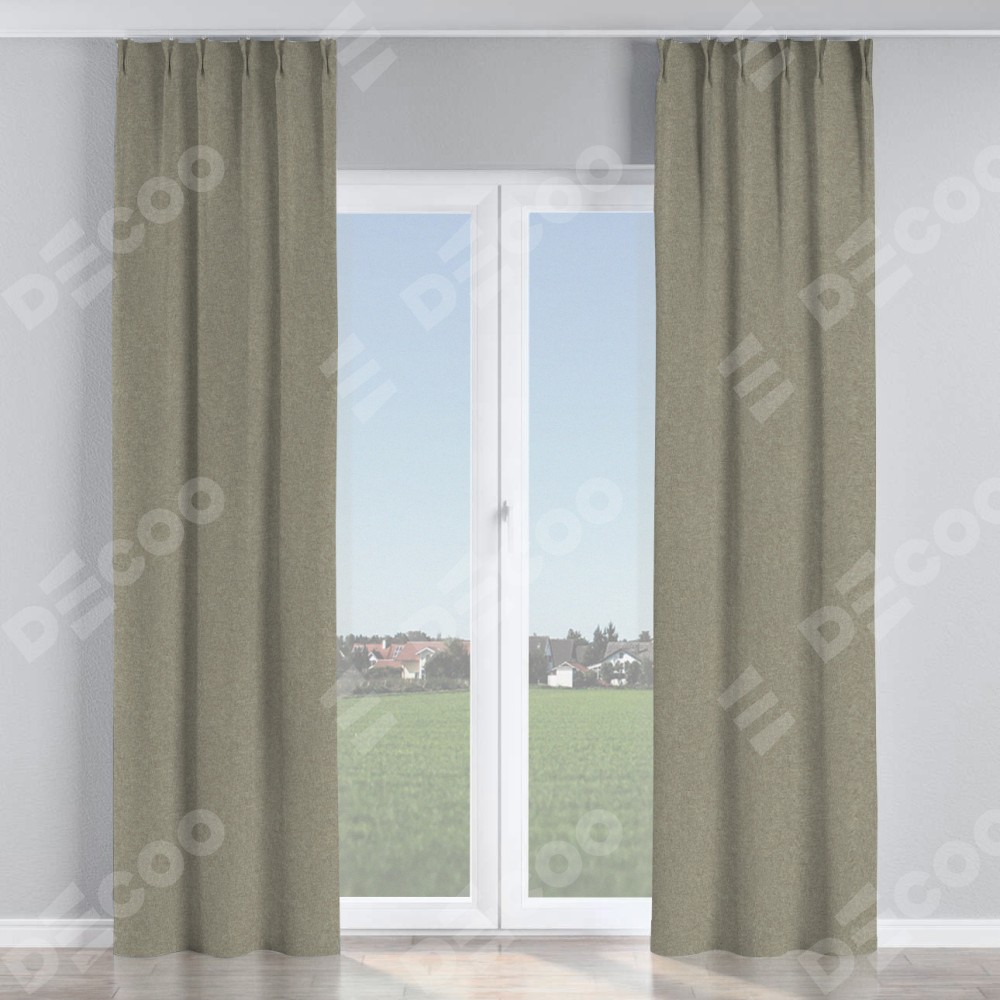 Комплект прямых штор, от производителя «Cortin», пошиты из ткани лён блэкаут светло-бежевый, артикул ткани 69445. С изнаночной стороны в верхней части штор пристрачивается шторная лента с декоративными складками «Кустик». Для создания элегантных складок прямые шторы шьются по стандарту с коэффициентом 1:2 (на 100 см. ширины проёма 200 см. ширины ткани).