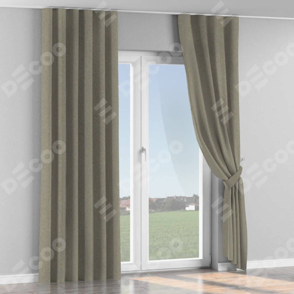 Комплект прямых штор, от производителя «Cortin», пошиты из ткани лён блэкаут светло-бежевый, артикул ткани 69445. С изнаночной стороны в верхней части штор пристрачивается шторная лента с декоративными складками «Волна». Для создания элегантных складок прямые шторы шьются по стандарту с коэффициентом 1:2 (на 100 см. ширины проёма 200 см. ширины ткани).