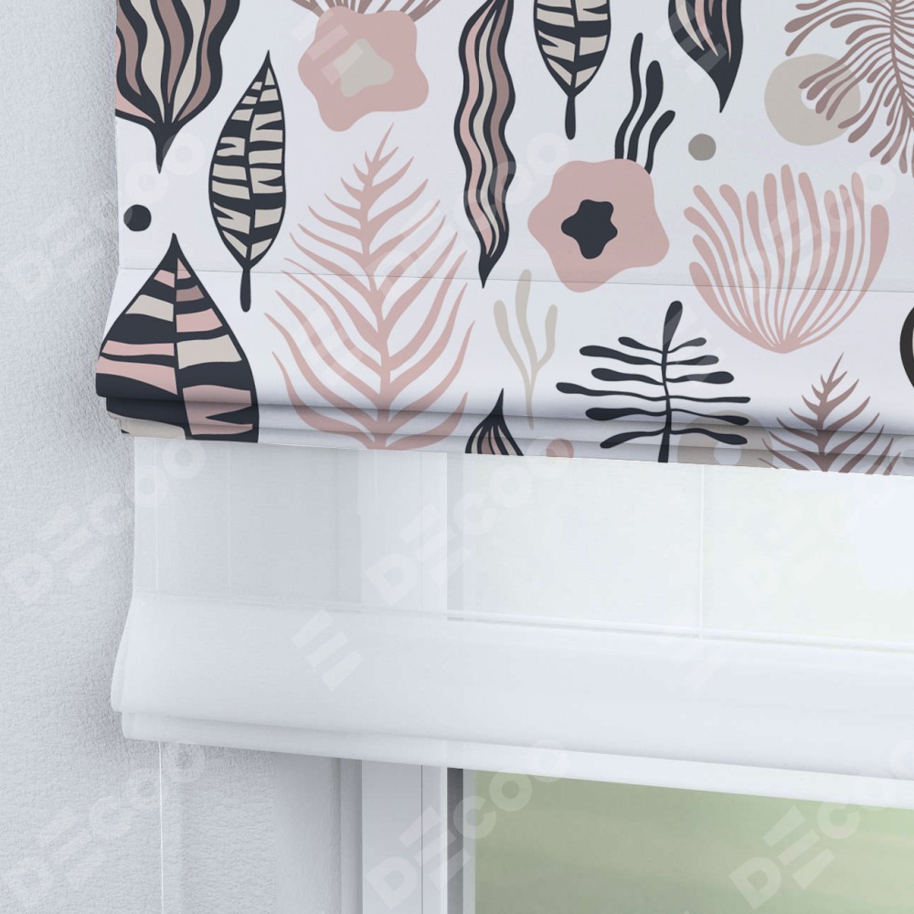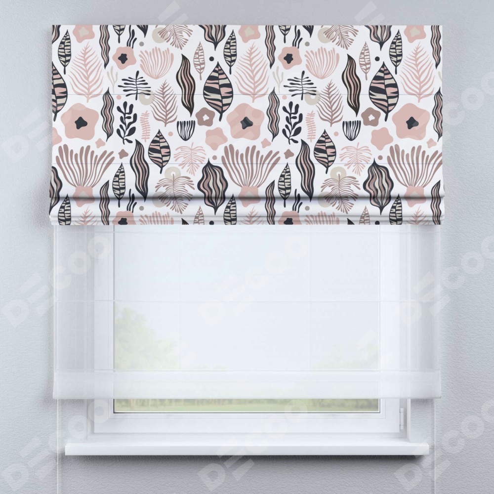 Римская штора день-ночь производителя «Cortin», используется для проёма, пошита из двух полотен, с лицевой блэкаут с нанесением сублимационной печати «Светлый парадиз», вторая ткань тюль (по стандарту комплектуется тюль белого цвета артикул V-01). Имеет универсальный механизм и подходит для монтажа: на потолок, на стену и в нишу.