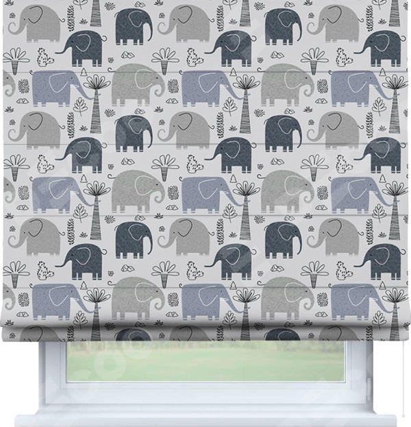 Римская штора «Кортин» для проема «Серые слоники»