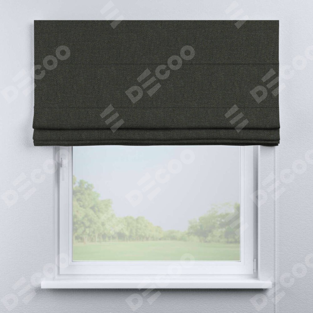 Римская штора производителя «Cortin», используется для проёма, пошита из ткани лён димаут графитово-серый, артикул ткани 35129. Имеет универсальный механизм и подходит для монтажа: на потолок, на стену и в нишу.