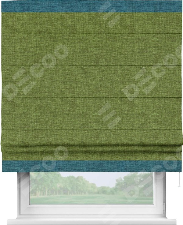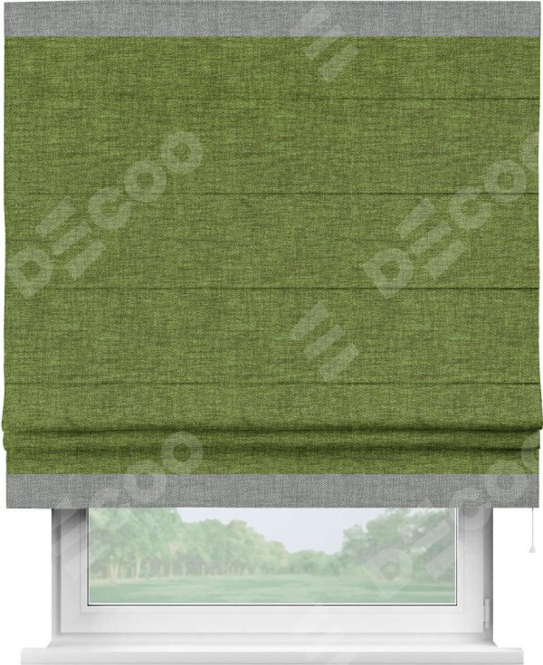 Римская штора «Кортин» с кантом Горизонт, для проема, ткань рогожка димаут, салатовый