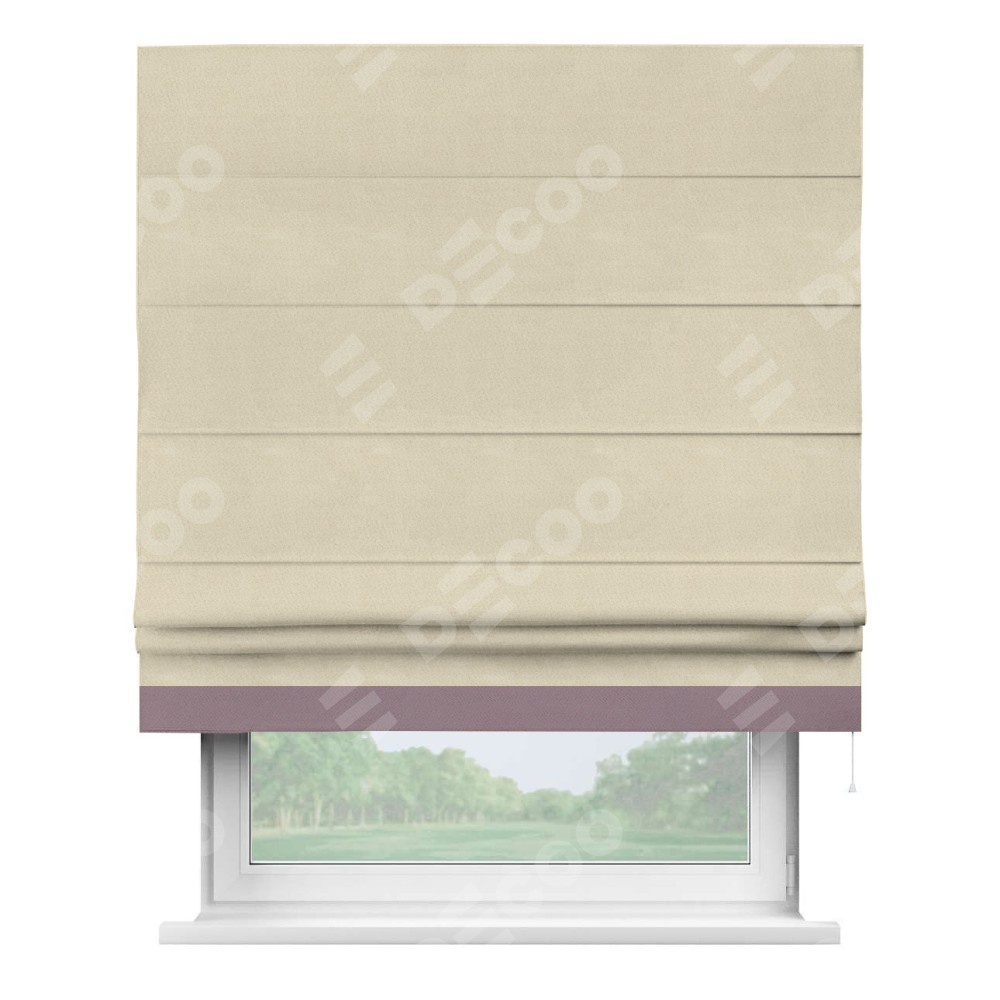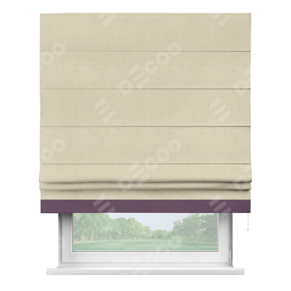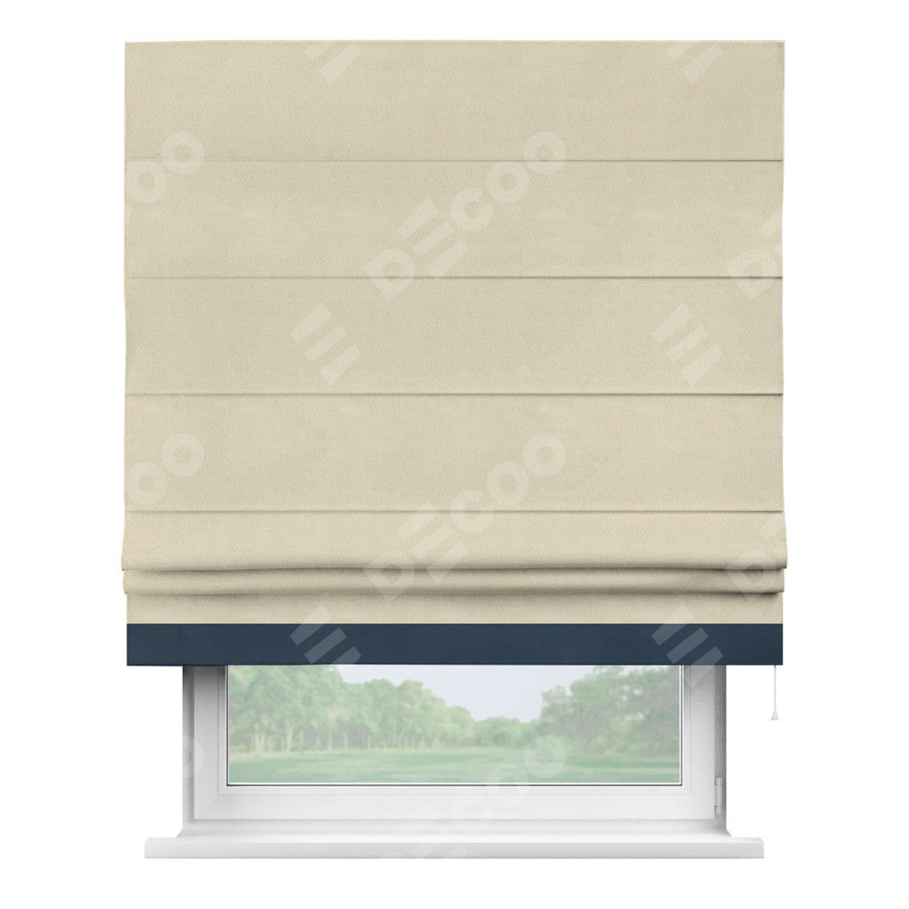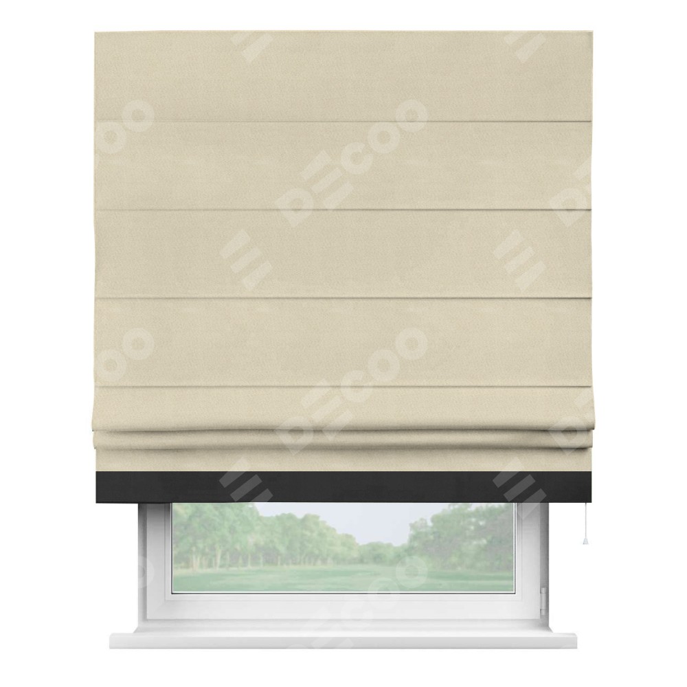Римская штора производителя «Cortin», используется для проёма, пошита из ткани блэкаут однотонный бежевый, артикул ткани 13125. Отделка шторы кантом «Джестер», ткань для канта используется из блэкаута однотонного разной расцветки на выбор. Имеет универсальный механизм и подходит для монтажа: на потолок, на стену и в нишу.