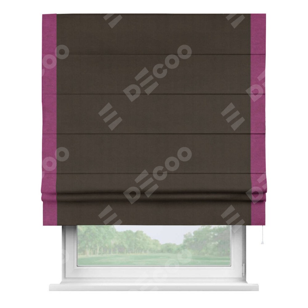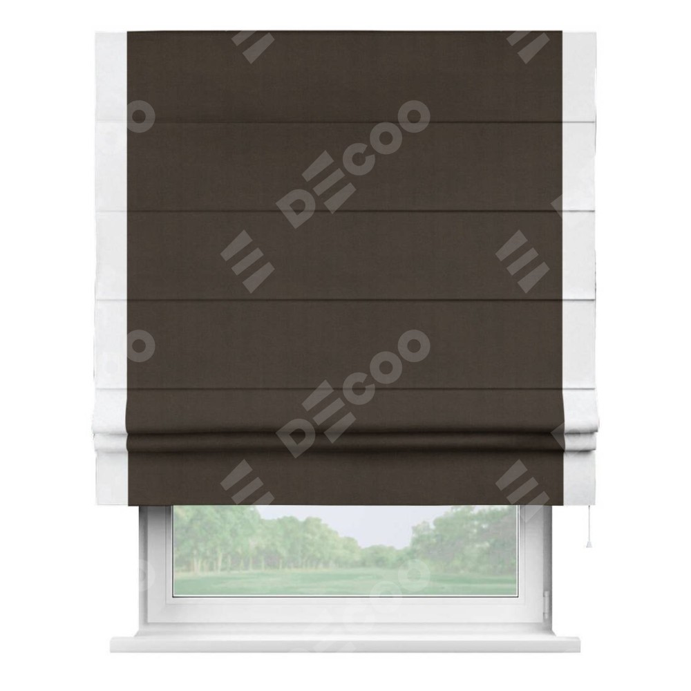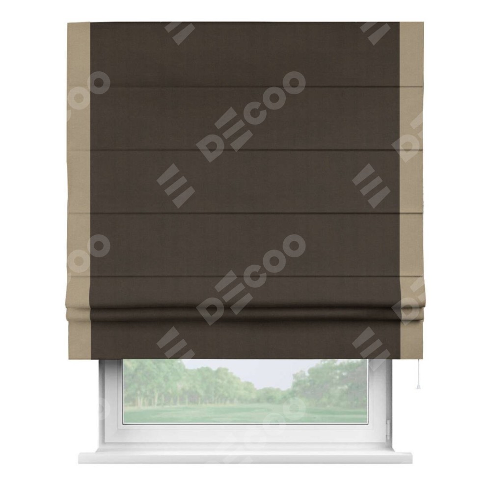 Римская штора «Кортин» с кантом Стрим Дуо, для проема, ткань вельвет тёмно-коричневый