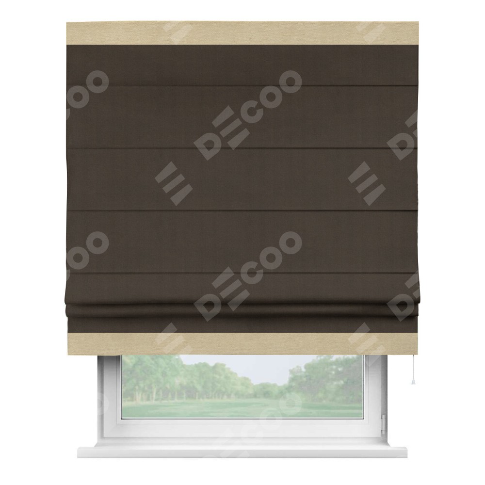 Римская штора «Кортин» с кантом Горизонт, для проема, ткань вельвет тёмно-коричневый