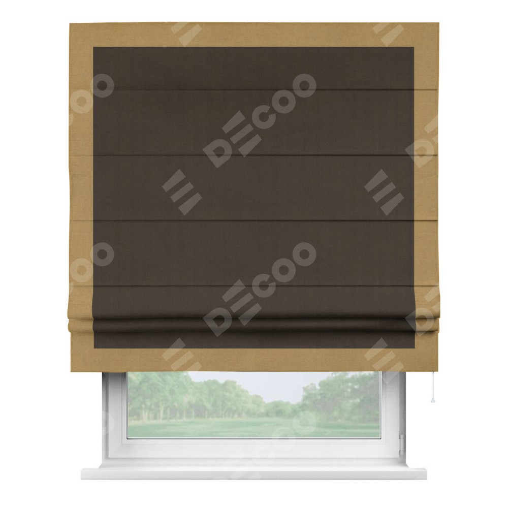 Римская штора производителя «Cortin», используется для проёма, пошита из ткани вельвет тёмно-коричневый, артикул ткани 30991. Отделка шторы кантом «Чесс», ткань для канта используется из вельвета разной расцветки на выбор. Имеет универсальный механизм и подходит для монтажа: на потолок, на стену и в нишу.