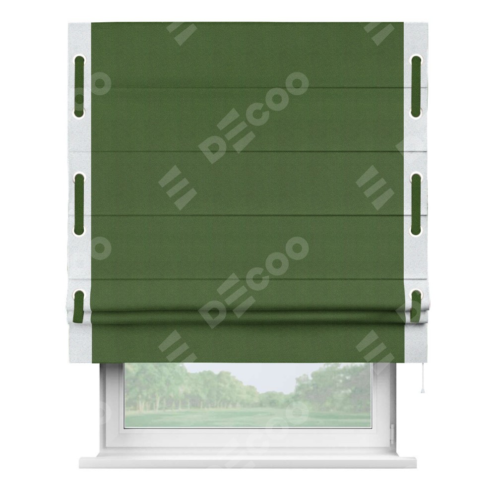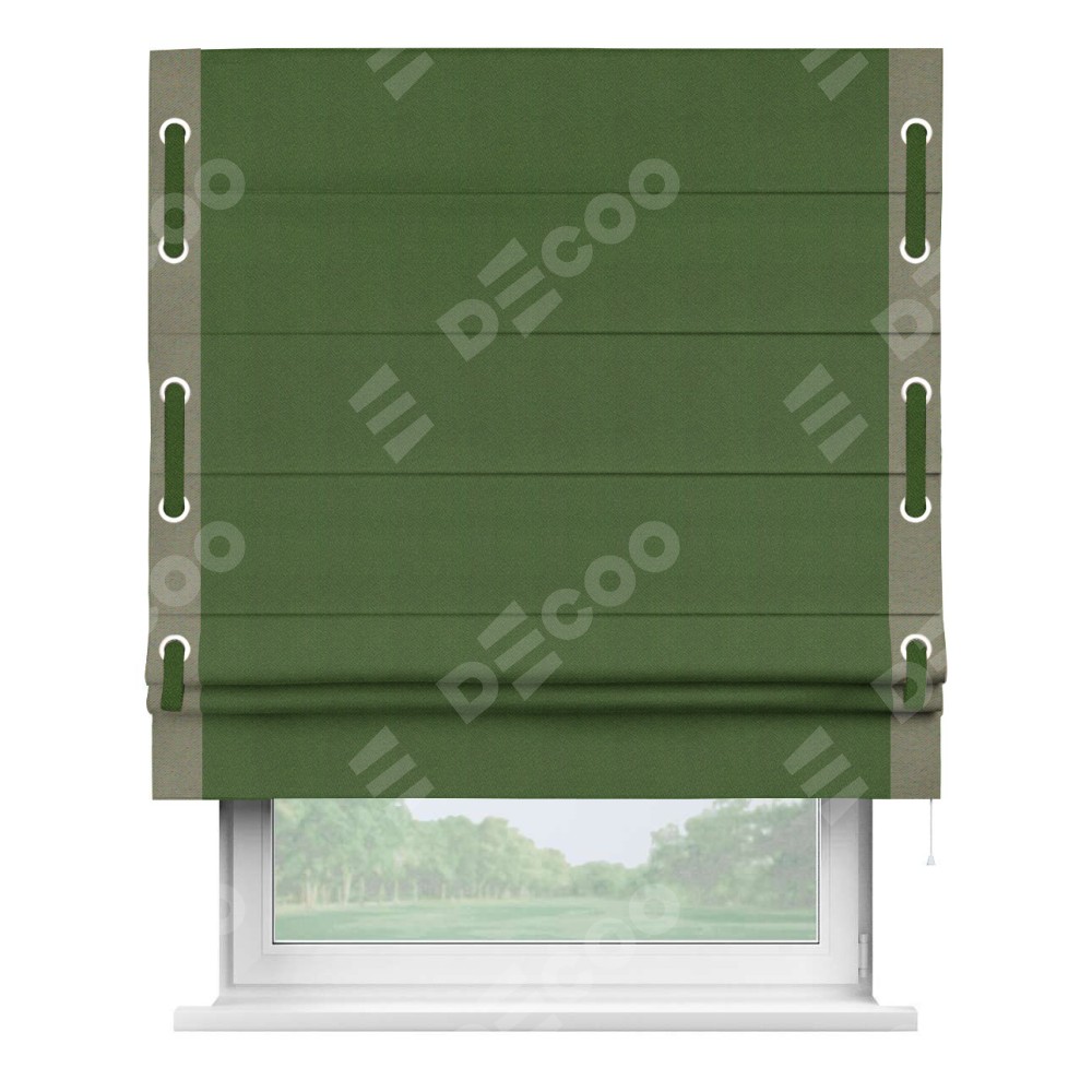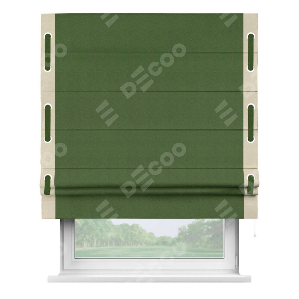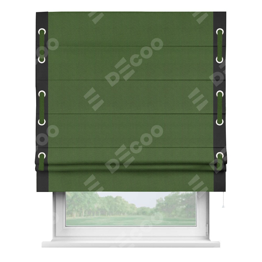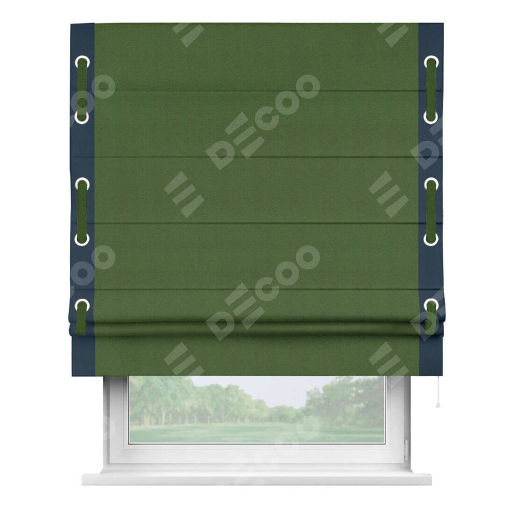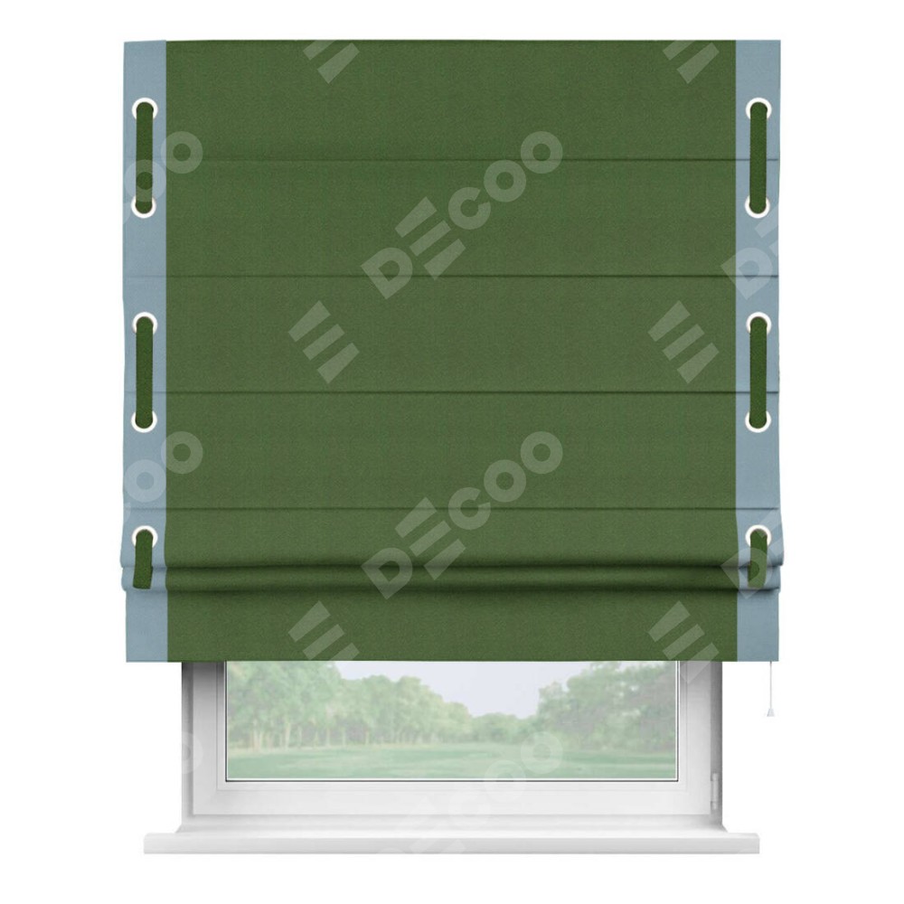 Римская штора «Кортин» с кантом Стрим Дуо (люверсы с пояском), для проема, ткань блэкаут однотонный зелёный перламутр