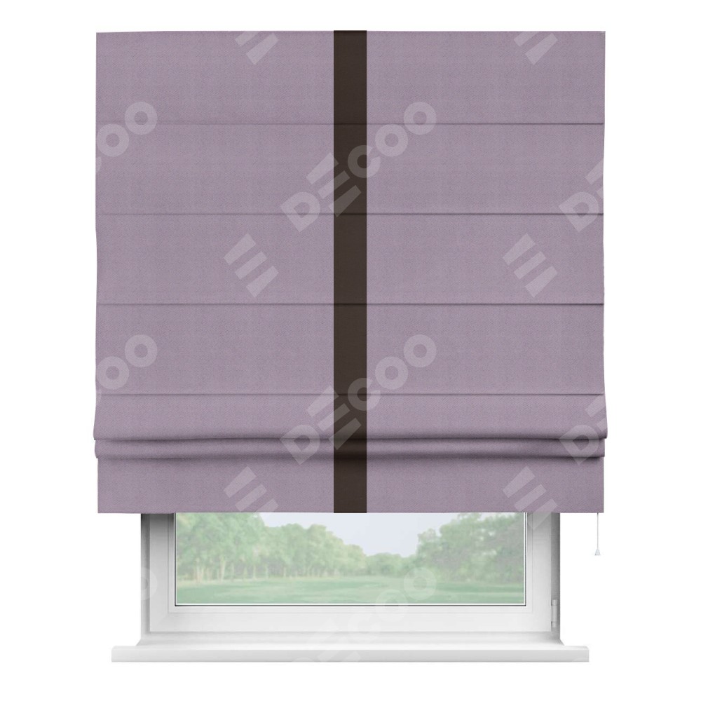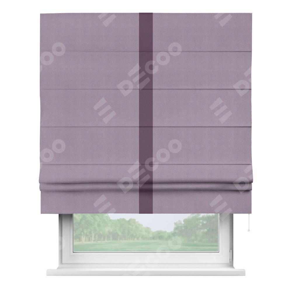 Римская штора производителя «Cortin», используется для проёма, пошита из ткани блэкаут однотонный светло-сиреневый, артикул ткани 29333−1. Отделка шторы кантом «Хайвей», ткань для канта используется из блэкаута однотонного разной расцветки на выбор. Имеет универсальный механизм и подходит для монтажа: на потолок, на стену и в нишу.